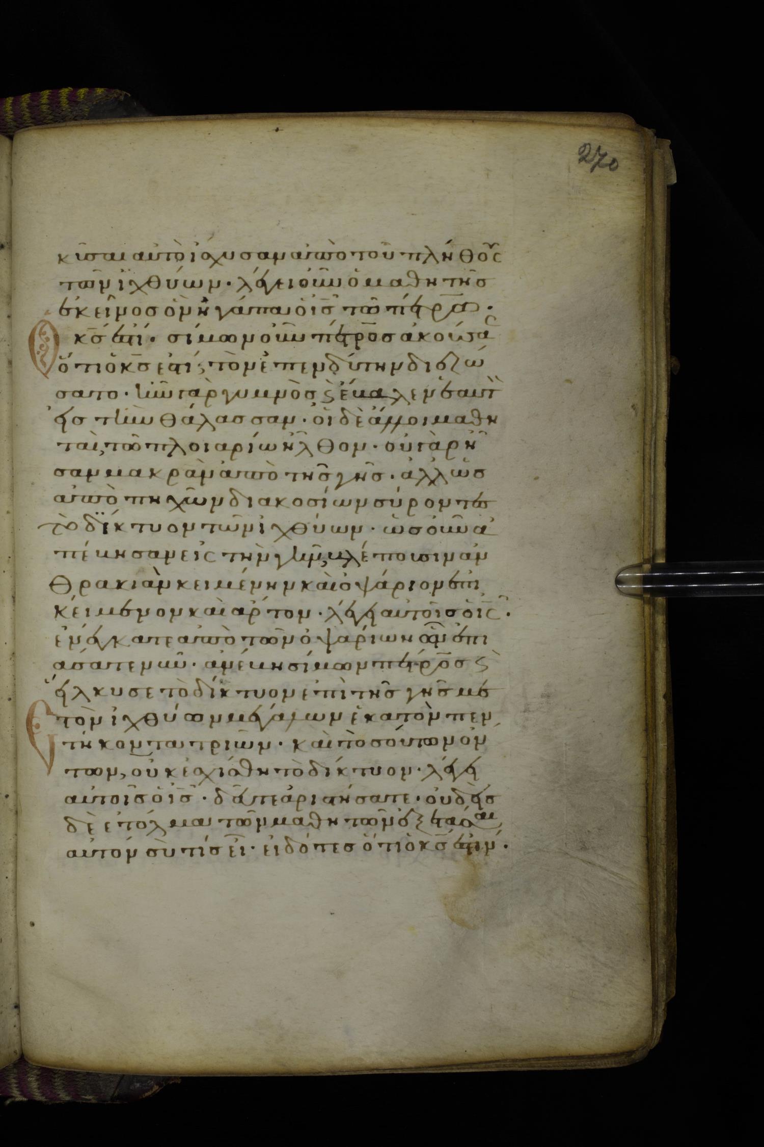 Fourteenth century minuscule (dated to 1321) of the Gospels on parchment; 290 leaves, 1 column, 21-23 lines per column. Images were taken at the National Library of Greece in Athens.