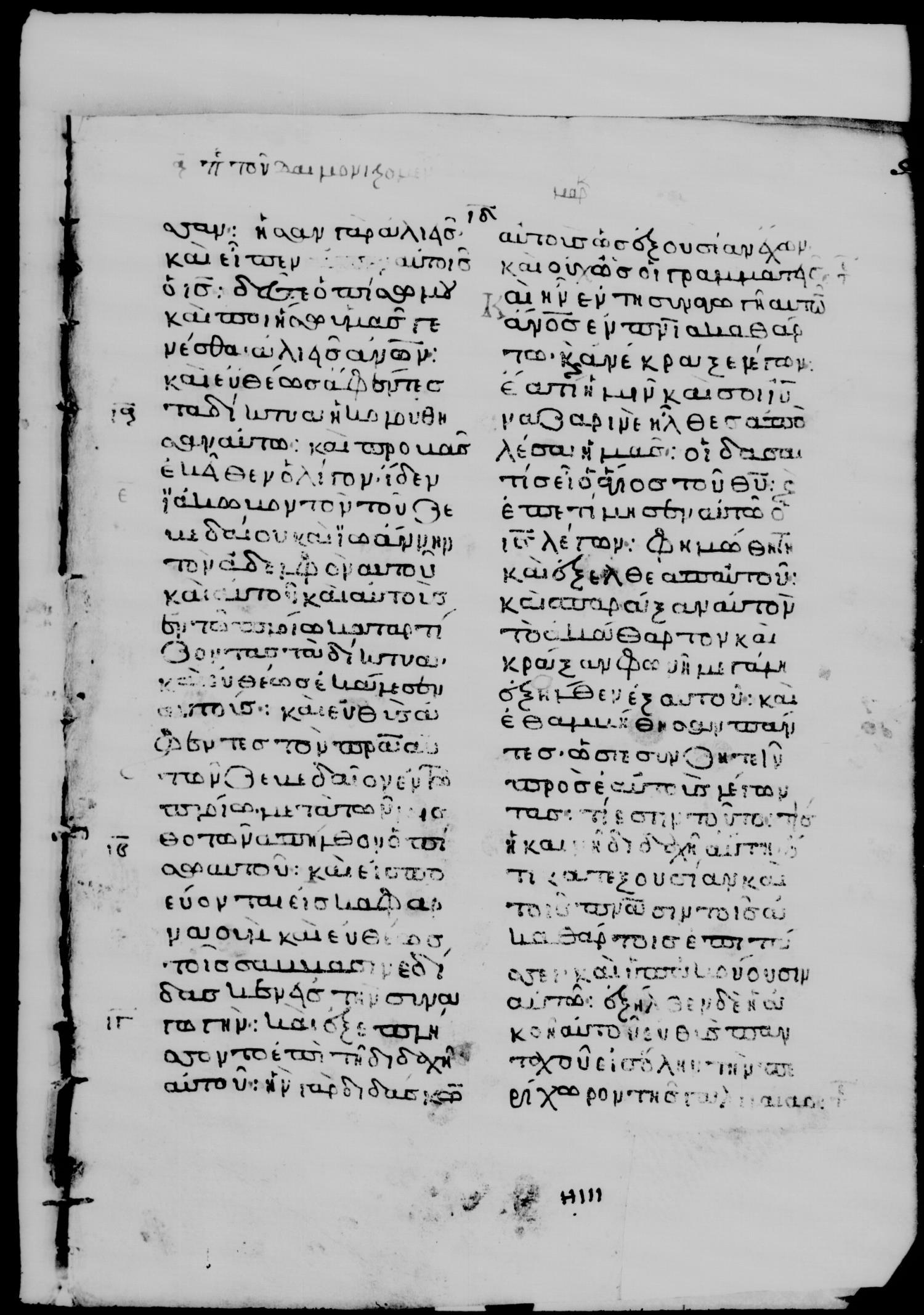 Twelfth century minuscule of the Gospels on parchment; 176 leaves, 2 columns, 27 lines per column. Digital images are from microfilm.