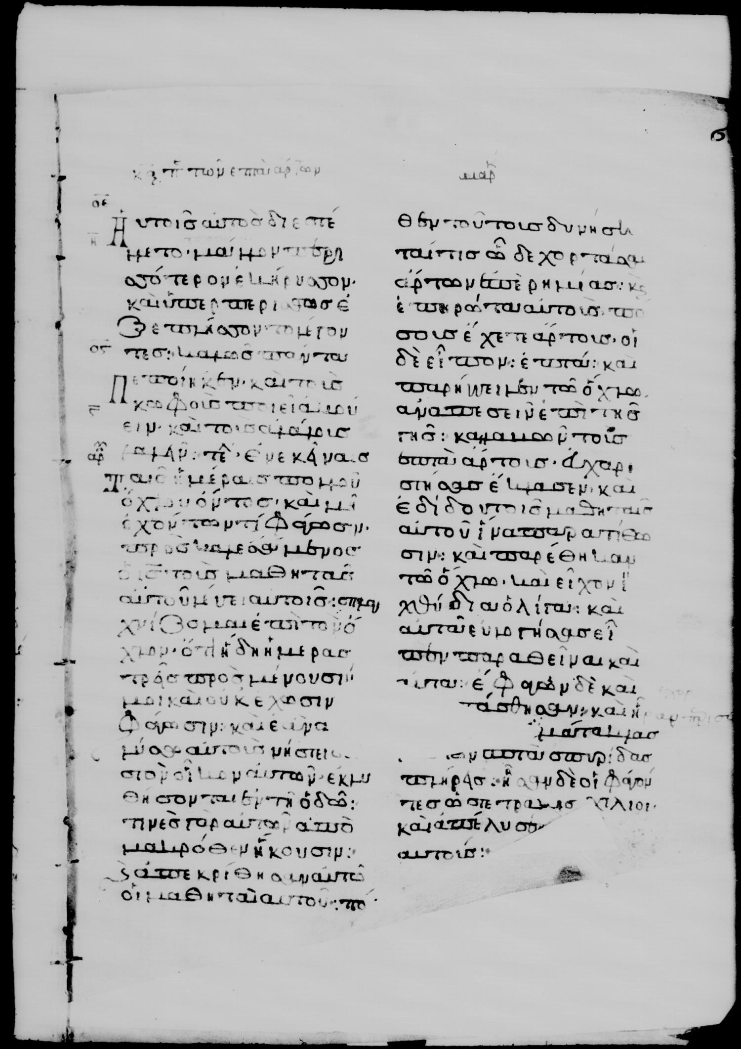 Ἐν ἐκείναις ταῖς ἡμέραις πάλιν πολλοῦ ὄχλου ὄντος καὶ μὴ ἐχόντων τί φάγωσιν, προσκαλεσάμενος τοὺς μαθητὰς λέγει αὐτοῖς