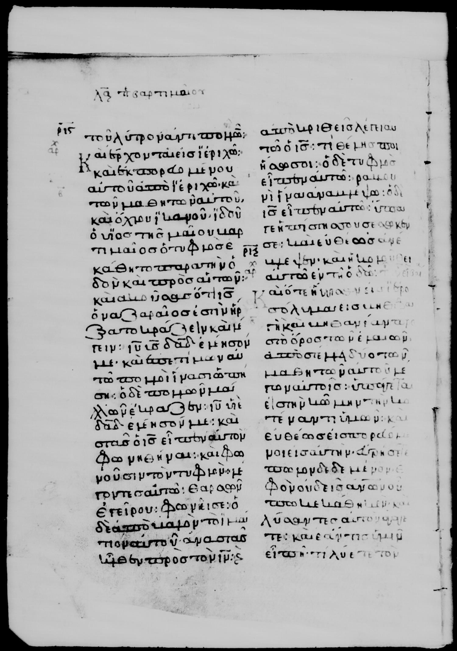 Twelfth century minuscule of the Gospels on parchment; 176 leaves, 2 columns, 27 lines per column. Digital images are from microfilm.