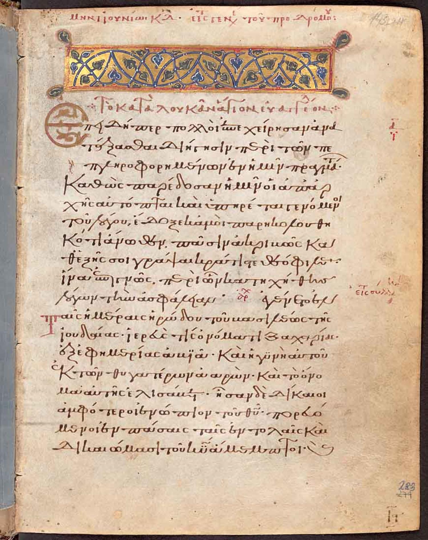 ΕΠΕΙΔΗΠΕΡ ΠΟΛΛΟΙ ἐπεχείρησαν ἀνατάξασθαι διήγησιν περὶ τῶν πεπληροφορημένων ἐν ἡμῖν πραγμάτων,