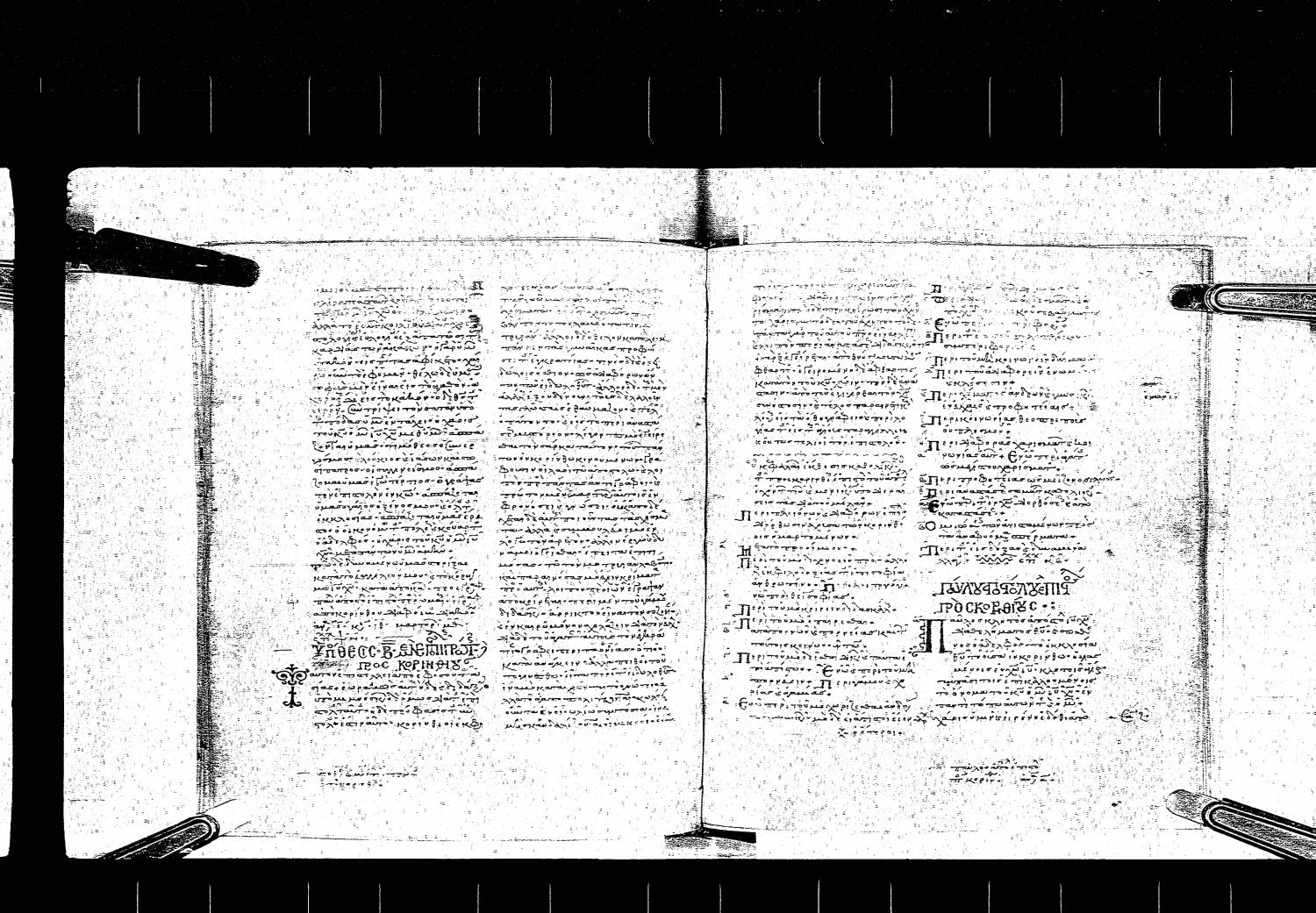 Twelfth century minuscule of the Apostolos, Paul, and Revelation on parchment; 123 leaves, 2 columns, 37 lines per column.