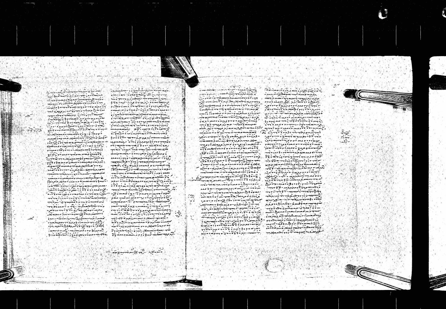 Twelfth century minuscule of the Apostolos, Paul, and Revelation on parchment; 123 leaves, 2 columns, 37 lines per column.