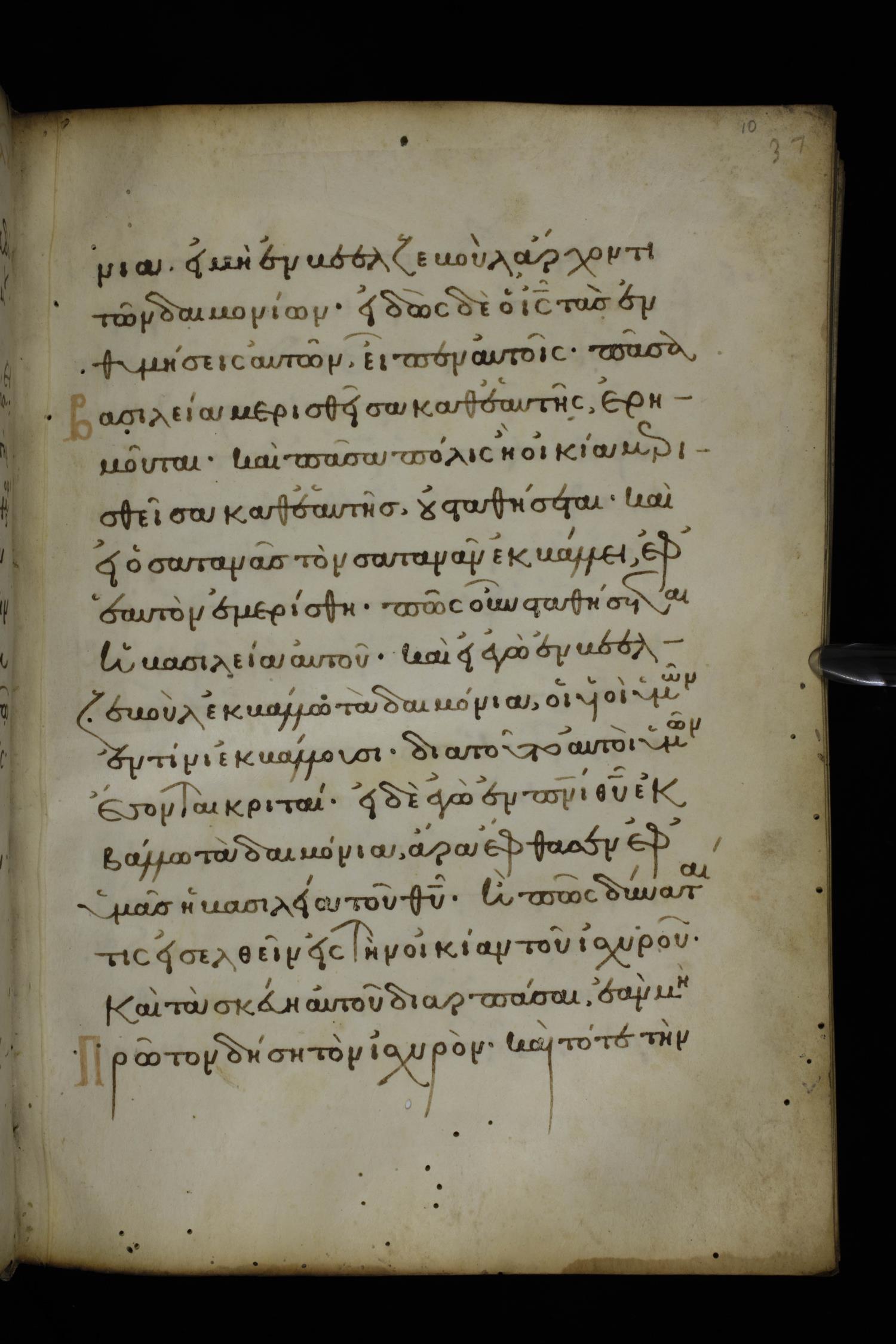 οἱ δὲ Φαρισαῖοι ἀκούσαντες εἶπον Οὗτος οὐκ ἐκβάλλει τὰ δαιμόνια εἰ μὴ ἐν τῷ Βεεζεβοὺλ / Βεελζεβοὺλ ἄρχοντι τῶν δαιμονίων.