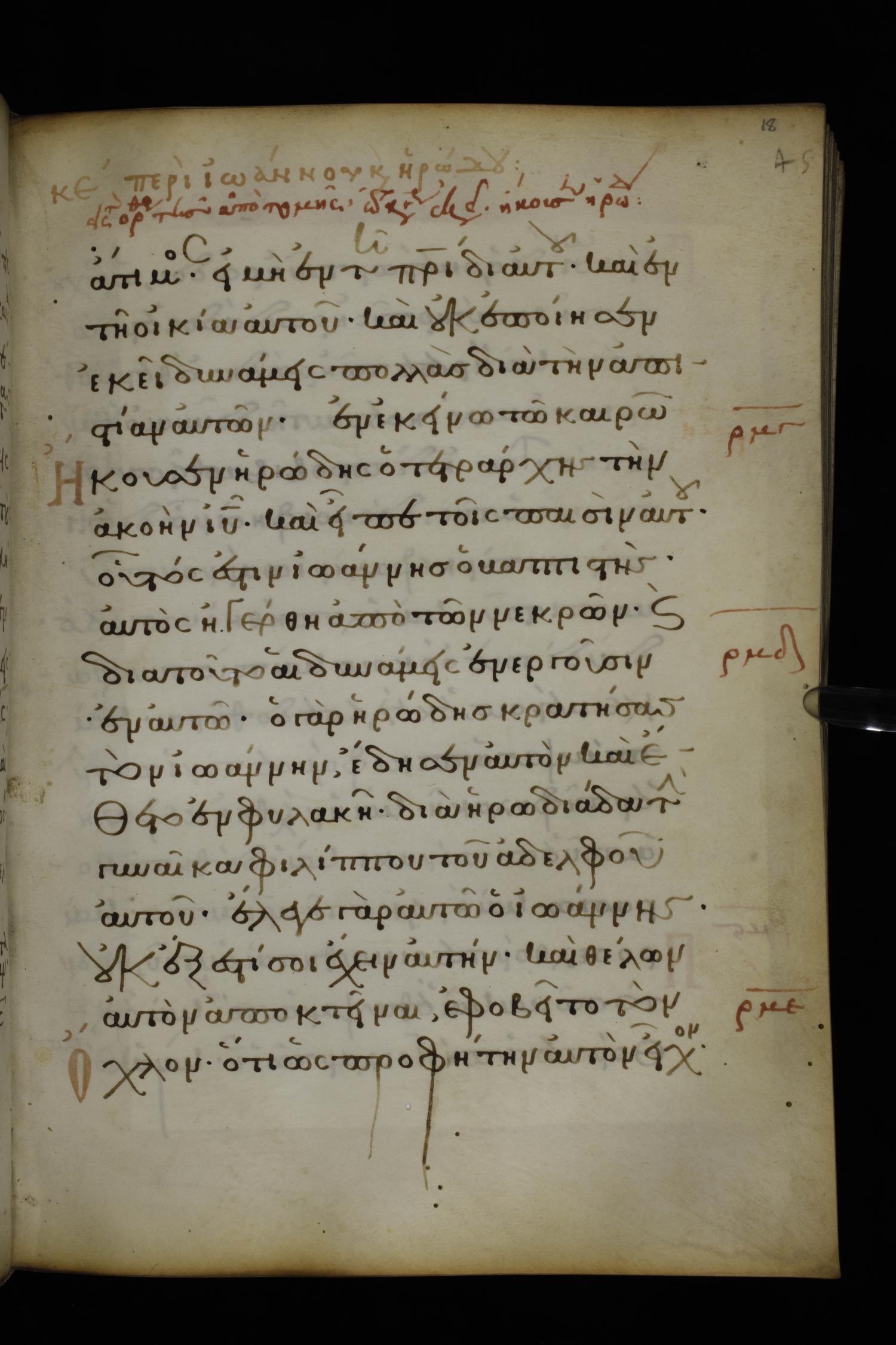 Ὁ γὰρ Ἡρῴδης κρατήσας τὸν Ἰωάνην ἔδησεν {αὐτὸν} καὶ ἐν φυλακῇ ἀπέθετο διὰ Ἡρῳδιάδα τὴν γυναῖκα Φιλίππου τοῦ ἀδελφοῦ αὐτοῦ,