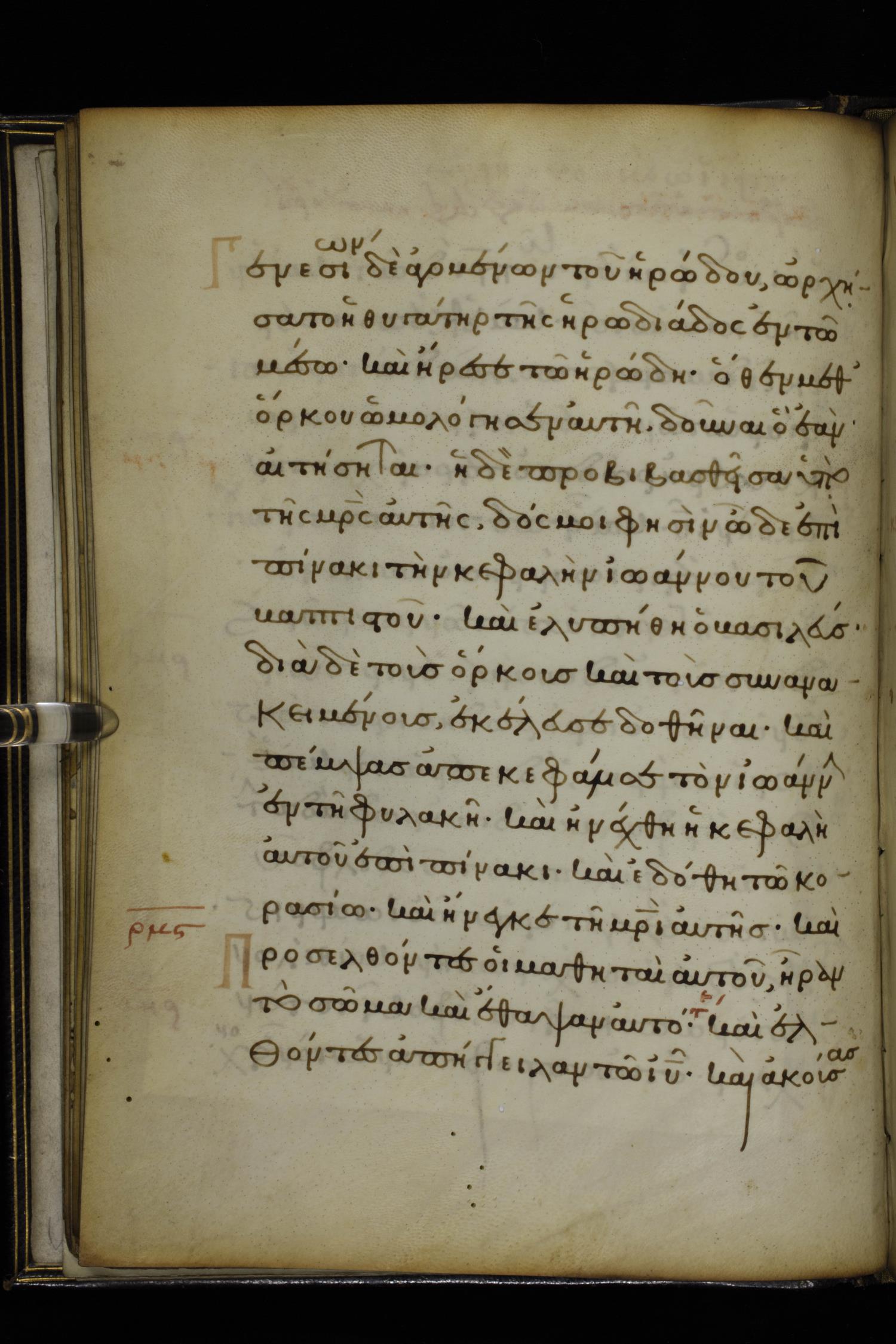 ἡ δὲ προβιβασθεῖσα ὑπὸ τῆς μητρὸς αὐτῆς Δός μοι, φησίν, ὧδε ἐπὶ πίνακι τὴν κεφαλὴν Ἰωάνου / Ἰωάννου τοῦ βαπτιστοῦ.