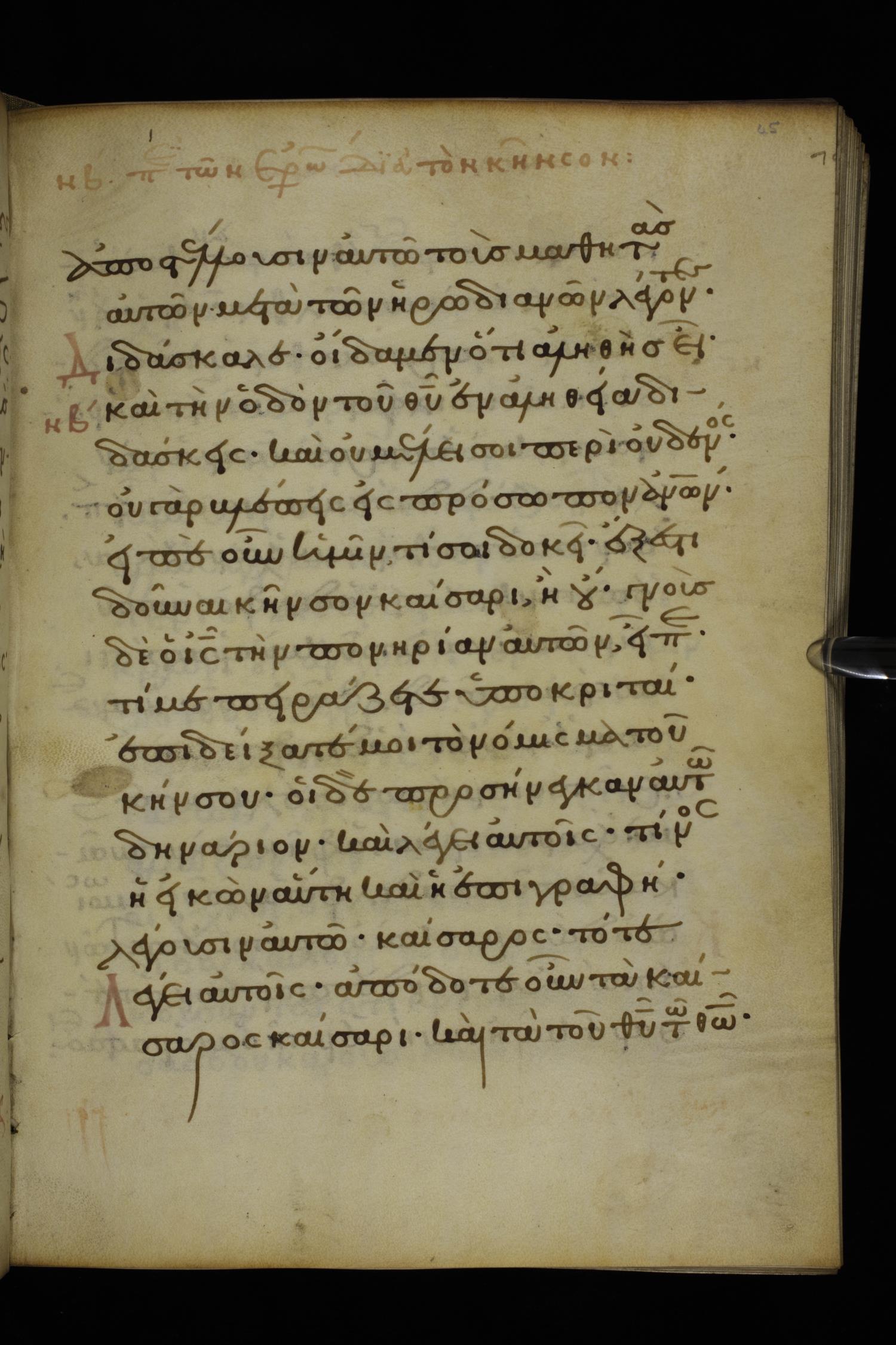 καὶ ἀποστέλλουσιν αὐτῷ τοὺς μαθητὰς αὐτῶν μετὰ τῶν Ἡρῳδιανῶν λέγοντας / λέγοντες Διδάσκαλε, οἴδαμεν ὅτι ἀληθὴς εἶ καὶ τὴν ὁδὸν τοῦ θεοῦ ἐν ἀληθείᾳ διδάσκεις, καὶ οὐ μέλει σοι περὶ οὐδενός, οὐ γὰρ βλέπεις εἰς πρόσωπον ἀνθρώπων·