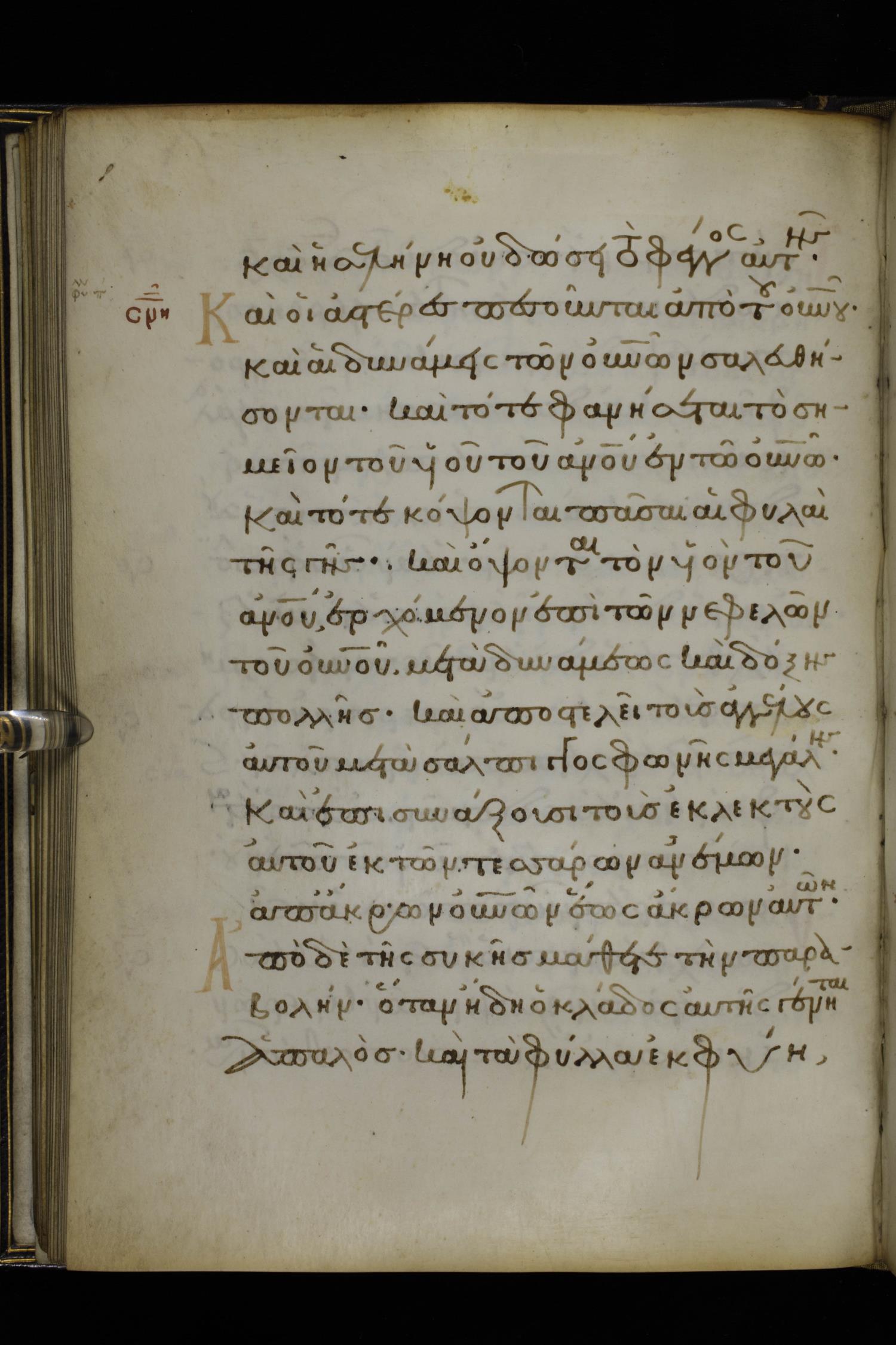 Εὐθέως δὲ μετὰ τὴν θλίψιν τῶν ἡμερῶν ἐκείνων ὁ ἥλιος σκοτισθήσεται, καὶ ἡ σελήνη οὐ δώσει τὸ φέγγος αὐτῆς, καὶ οἱ ἀστέρες πεσοῦνται ἀπὸ τοῦ οὐρανοῦ, καὶ αἱ δυνάμεις τῶν οὐρανῶν σαλευθήσονται.