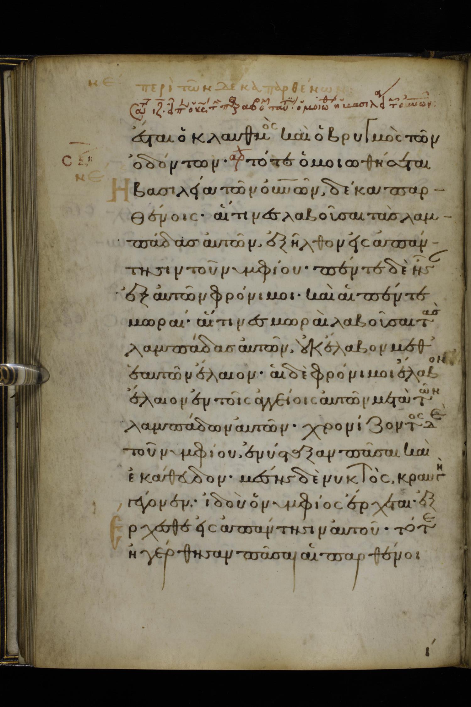 Τότε ὁμοιωθήσεται ἡ βασιλεία τῶν οὐρανῶν δέκα παρθένοις, αἵτινες λαβοῦσαι τὰς λαμπάδας ἑαυτῶν ἐξῆλθον εἰς ὑπάντησιν τοῦ νυμφίου.