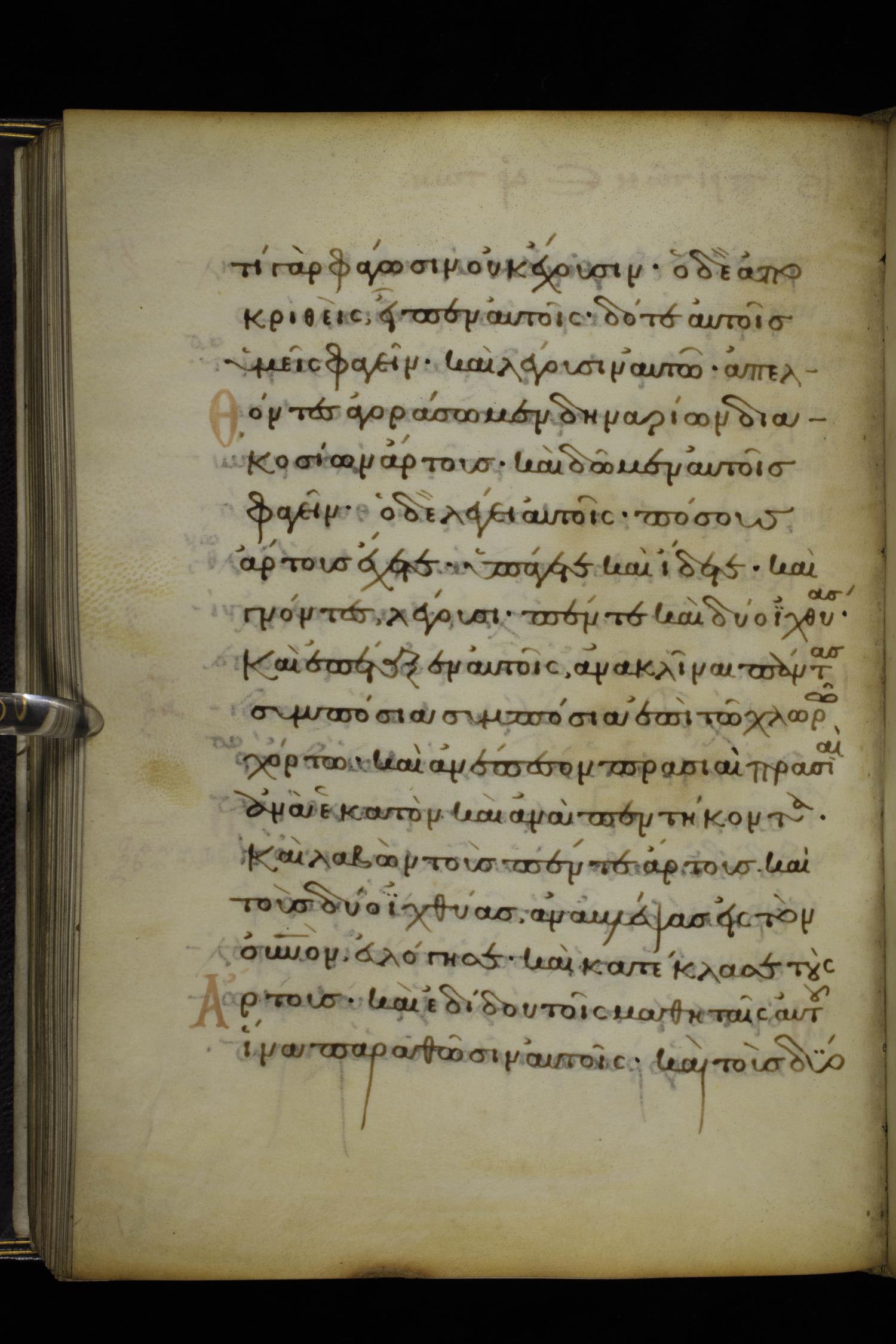 ὁ δὲ λέγει αὐτοῖς Πόσους ἔχετε ⇔ ἄρτους; ὑπάγετε ἴδετε. καὶ γνόντες λέγουσιν Πέντε, καὶ δύο ἰχθύας.