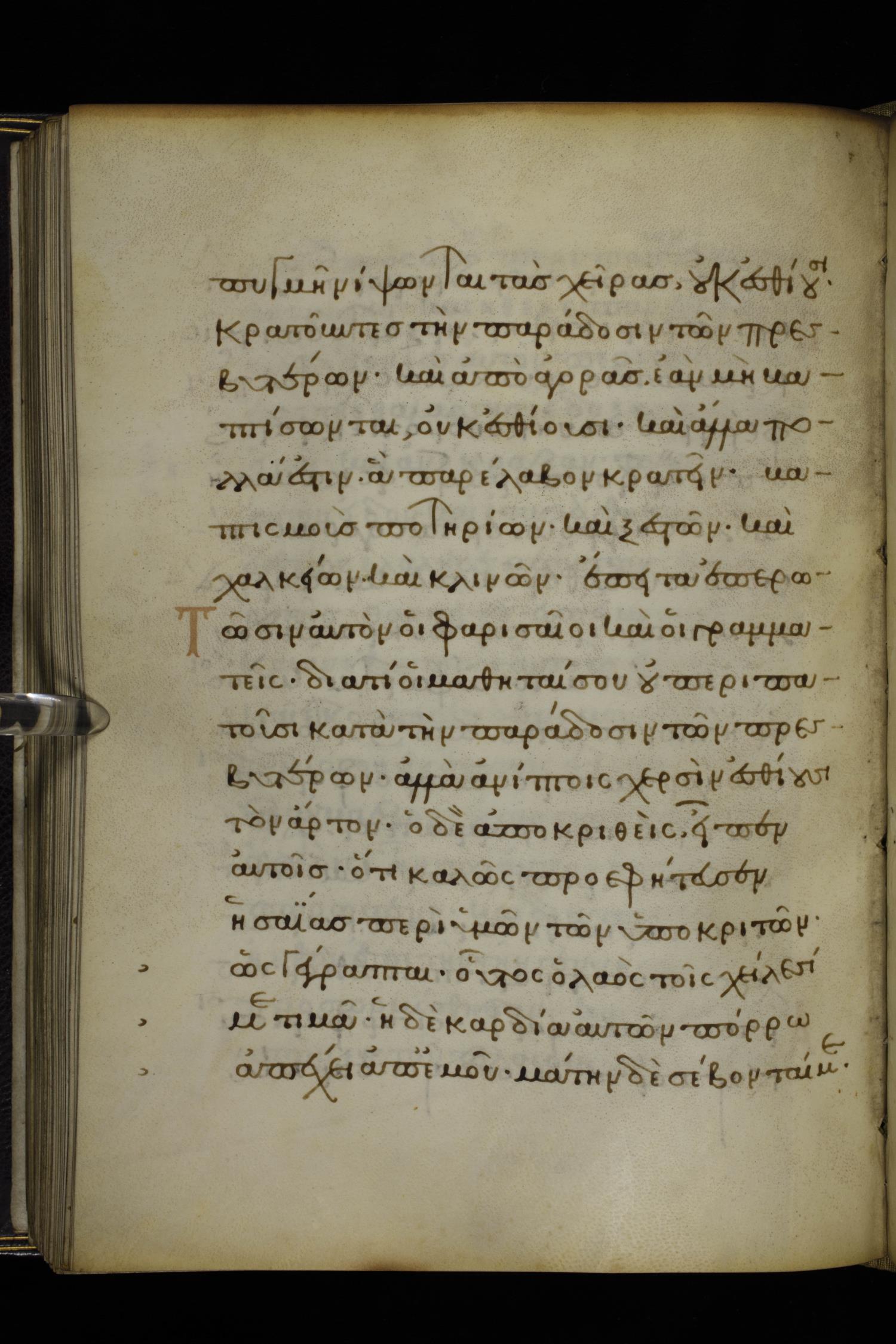 οἱ γὰρ Φαρισαῖοι καὶ πάντες οἱ Ἰουδαῖοι ἐὰν μὴ πυγμῇ νίψωνται τὰς χεῖρας οὐκ ἐσθίουσιν, κρατοῦντες τὴν παράδοσιν τῶν πρεσβυτέρων,