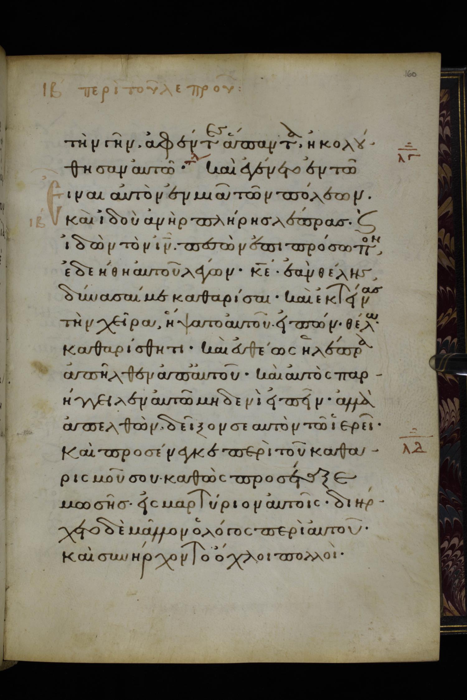Καὶ ἐγένετο ἐν τῷ εἶναι αὐτὸν ἐν μιᾷ τῶν πόλεων καὶ ἰδοὺ ἀνὴρ πλήρης λέπρας· ἰδὼν δὲ τὸν Ἰησοῦν πεσὼν ἐπὶ πρόσωπον ἐδεήθη αὐτοῦ λέγων Κύριε, ἐὰν θέλῃς δύνασαί με καθαρίσαι.