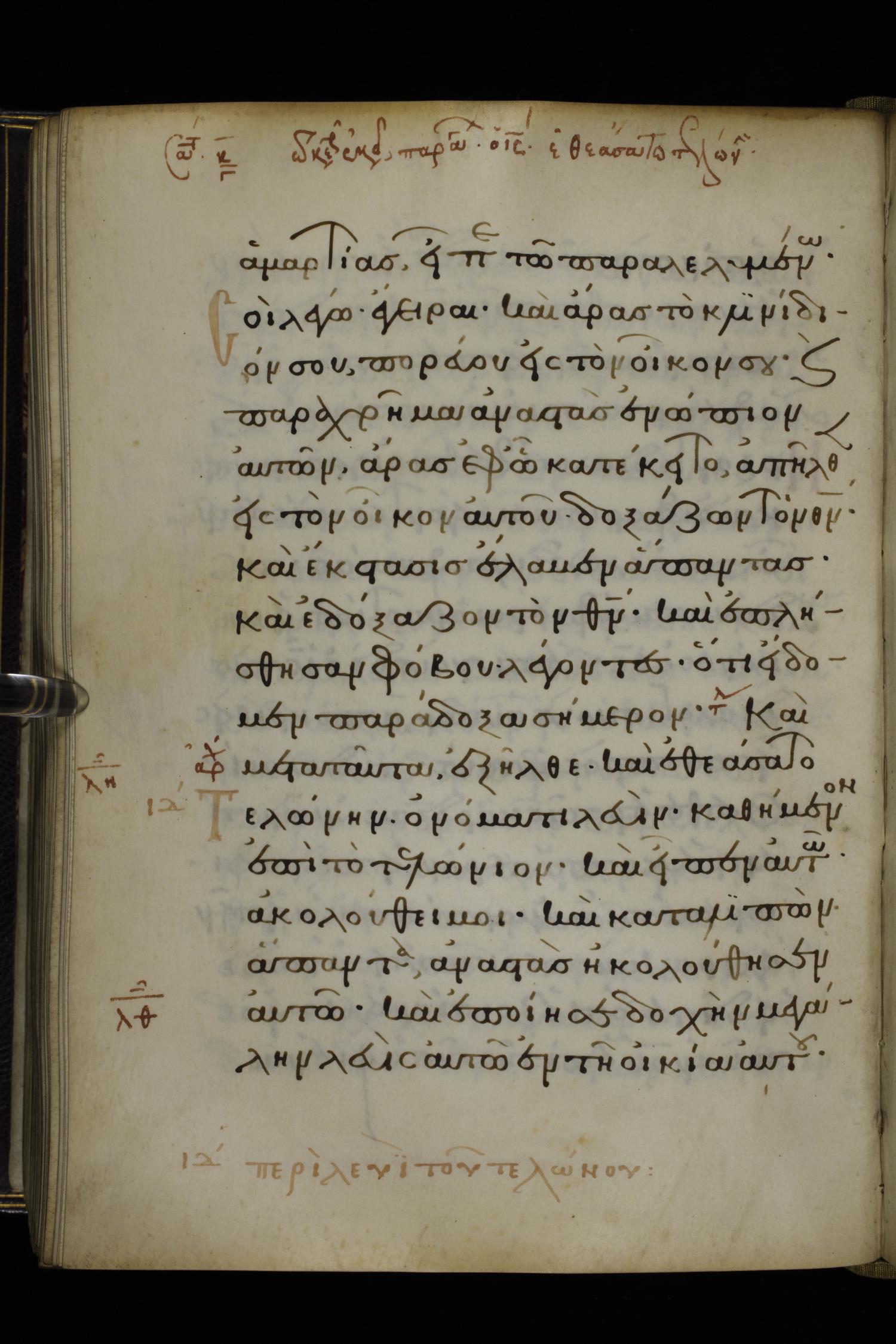 ἵνα δὲ εἰδῆτε ὅτι ὁ υἱὸς τοῦ ἀνθρώπου ἐξουσίαν ἔχει ἐπὶ τῆς γῆς ἀφιέναι ἁμαρτίας εἶπεν τῷ παραλελυμένῳ Σοὶ λέγω, ἔγειρε καὶ ἄρας τὸ κλινίδιόν σου πορεύου εἰς τὸν οἶκόν σου.