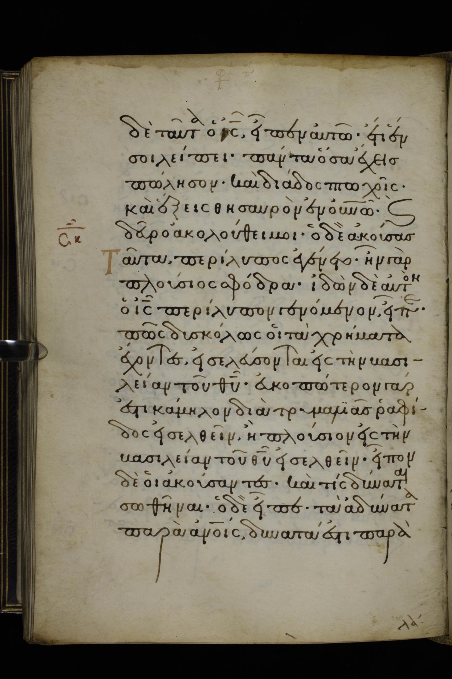 εὐκοπώτερον γάρ ἐστιν κάμηλον διὰ τρήματος βελόνης εἰσελθεῖν ἢ πλούσιον εἰς τὴν βασιλείαν τοῦ θεοῦ εἰσελθεῖν.