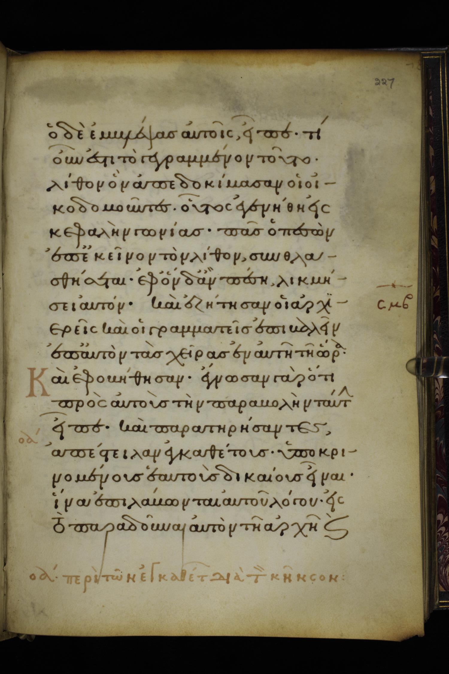 Twelfth century minuscule of the Gospels on parchment; 327 leaves, single column, 17 lines per column.