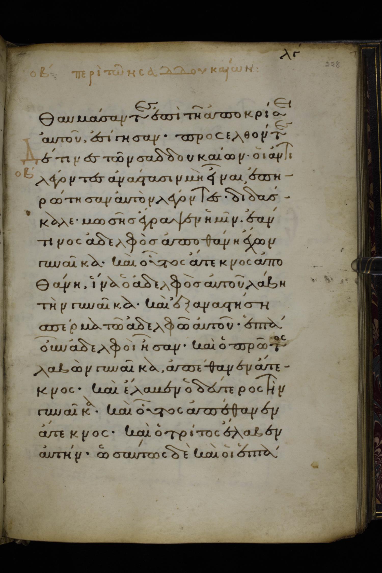 Προσελθόντες δέ τινες τῶν Σαδδουκαίων, οἱ λέγοντες / ἀντιλέγοντες ἀνάστασιν μὴ εἶναι, ἐπηρώτησαν αὐτὸν