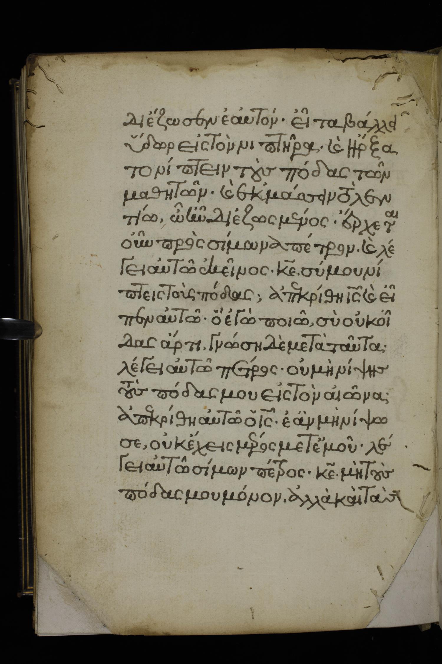 εἶτα βάλλει ὕδωρ εἰς τὸν νιπτῆρα, καὶ ἤρξατο νίπτειν τοὺς πόδας τῶν μαθητῶν καὶ ἐκμάσσειν τῷ λεντίῳ ᾧ ἦν διεζωσμένος.