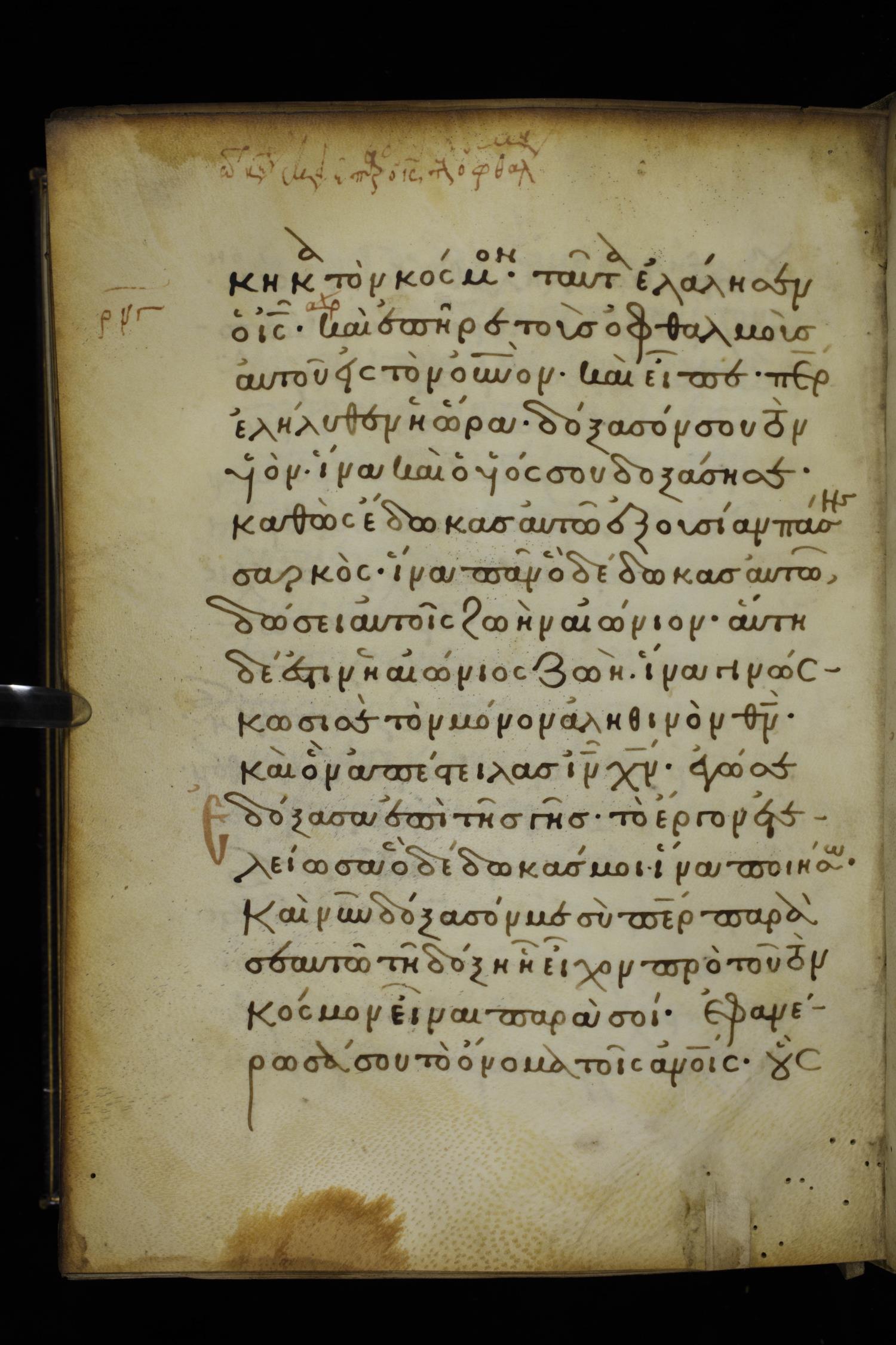 Twelfth century minuscule of the Gospels on parchment; 327 leaves, single column, 17 lines per column.