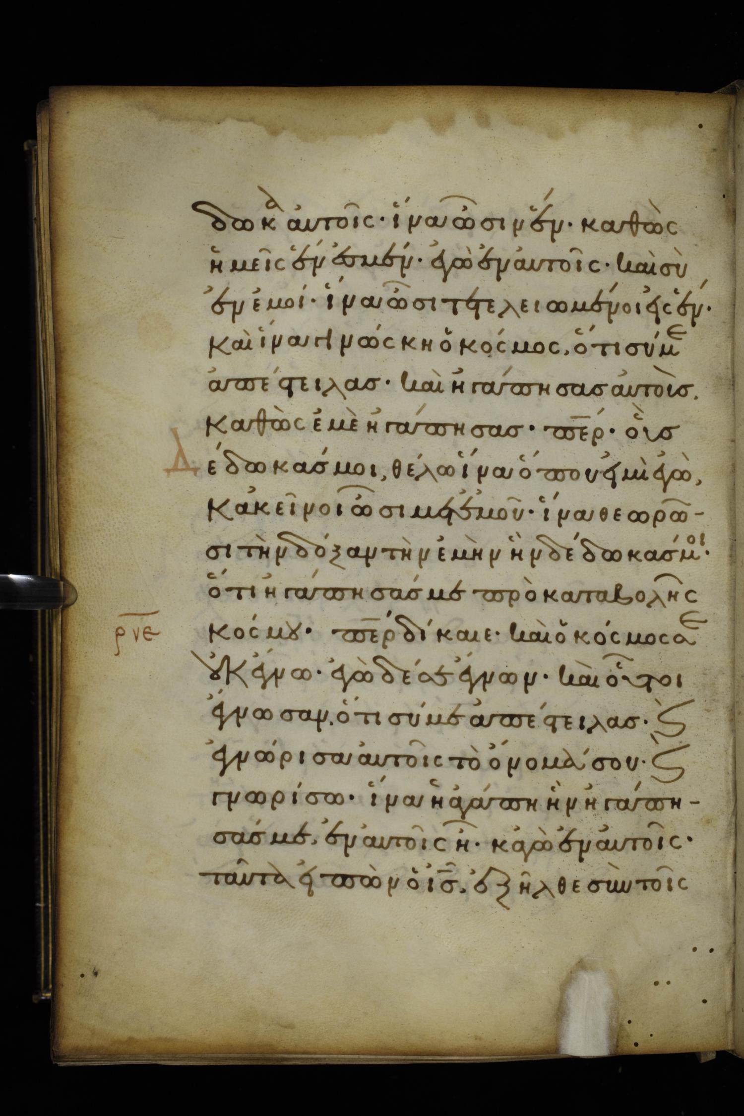 Πατήρ / πάτερ, ὃ δέδωκάς μοι, θέλω ἵνα ὅπου εἰμὶ ἐγὼ κἀκεῖνοι ὦσιν μετ´ ἐμοῦ, ἵνα θεωρῶσιν τὴν δόξαν τὴν ἐμὴν ἣν δέδωκάς μοι, ὅτι ἠγάπησάς με πρὸ καταβολῆς κόσμου.
