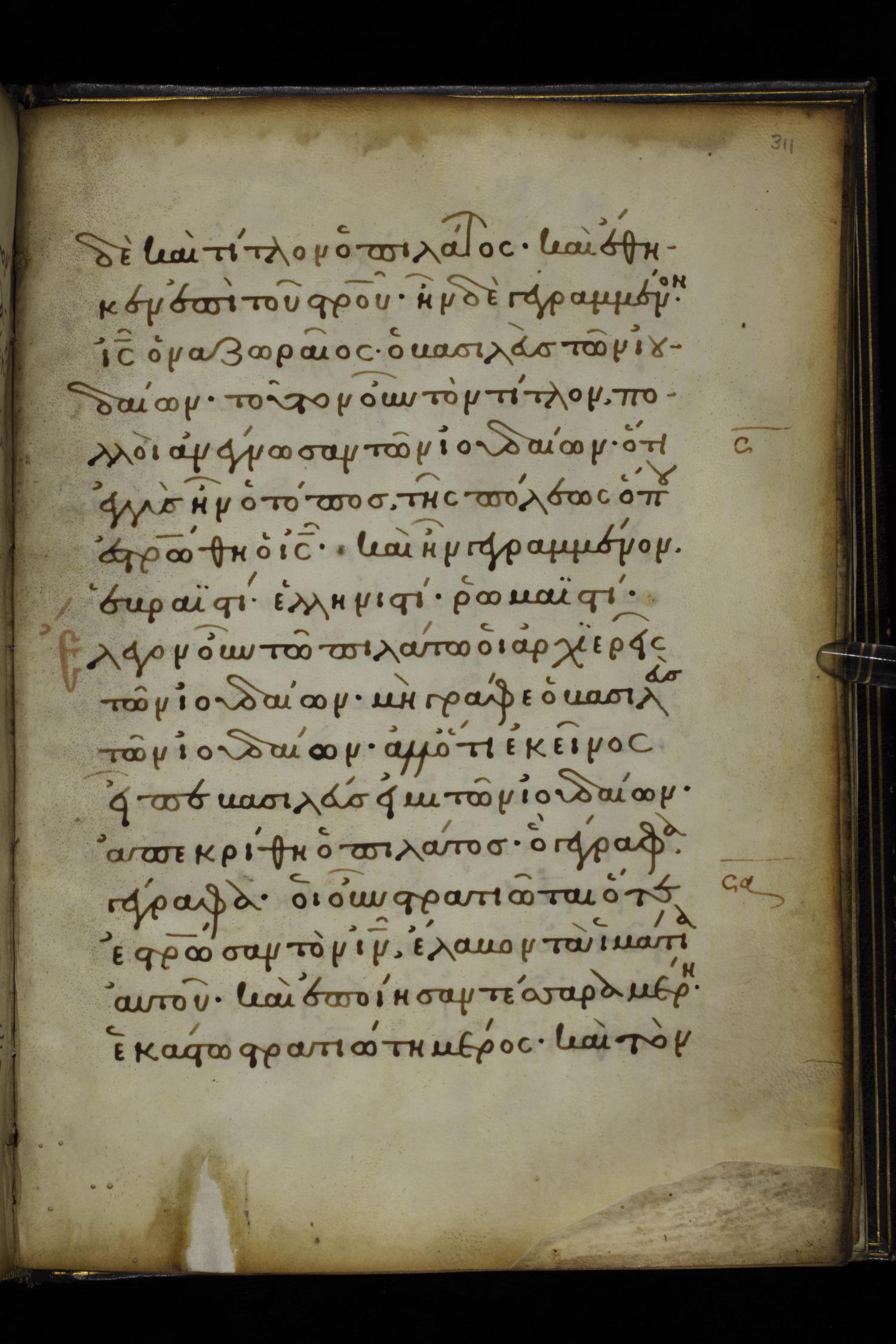 ἔγραψεν δὲ καὶ τίτλον ὁ Πειλᾶτος / Πιλᾶτος καὶ ἔθηκεν ἐπὶ τοῦ σταυροῦ· ἦν δὲ γεγραμμένον ΙΗΣΟΥΣ Ο ΝΑΖΩΡΑΙΟΣ Ο ΒΑΣΙΛΕΥΣ ΤΩΝ ΙΟΥΔΑΙΩΝ.