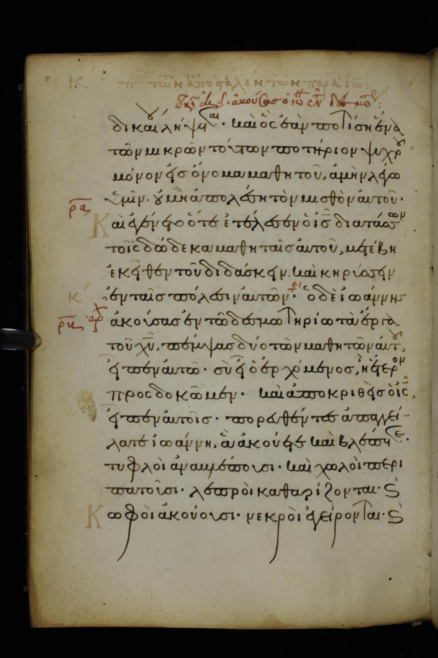 Ὁ δὲ Ἰωάνης / Ἰωάννης ἀκούσας ἐν τῷ δεσμωτηρίῳ τὰ ἔργα τοῦ χριστοῦ πέμψας διὰ τῶν μαθητῶν αὐτοῦ