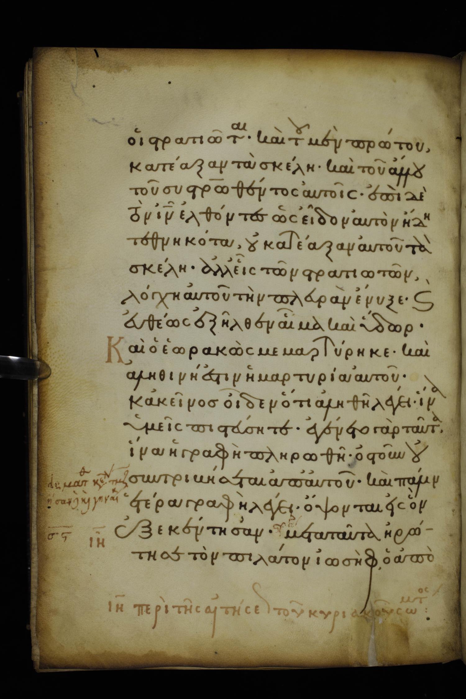 Twelfth century minuscule of the Gospels on parchment; 327 leaves, single column, 17 lines per column.