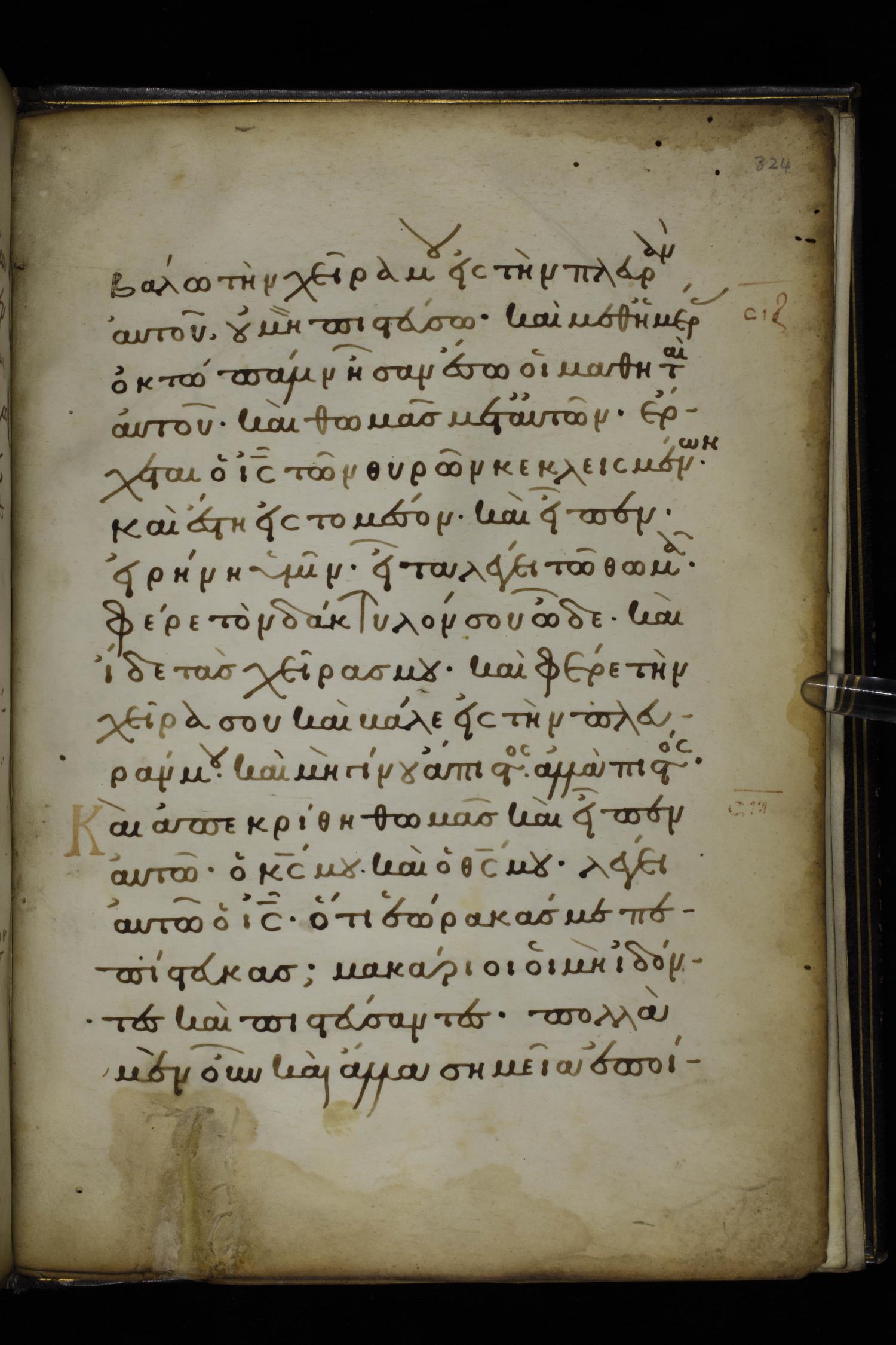 Twelfth century minuscule of the Gospels on parchment; 327 leaves, single column, 17 lines per column.