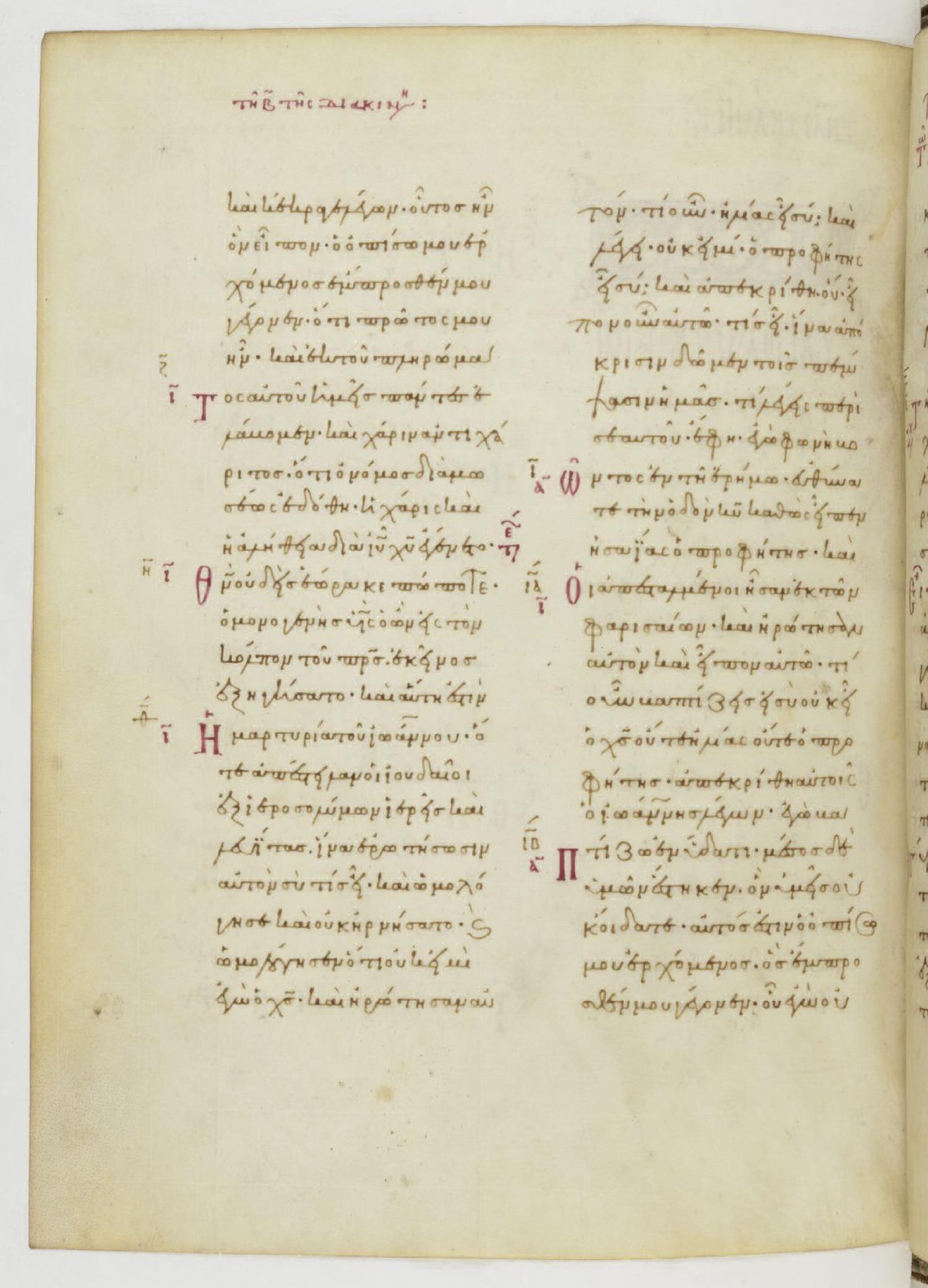 Eleventh century minuscule of the Gospels on parchment; 199 leaves, 2 columns, 22 lines per column. For recent images, please visit the Bibliothèque Nationale.