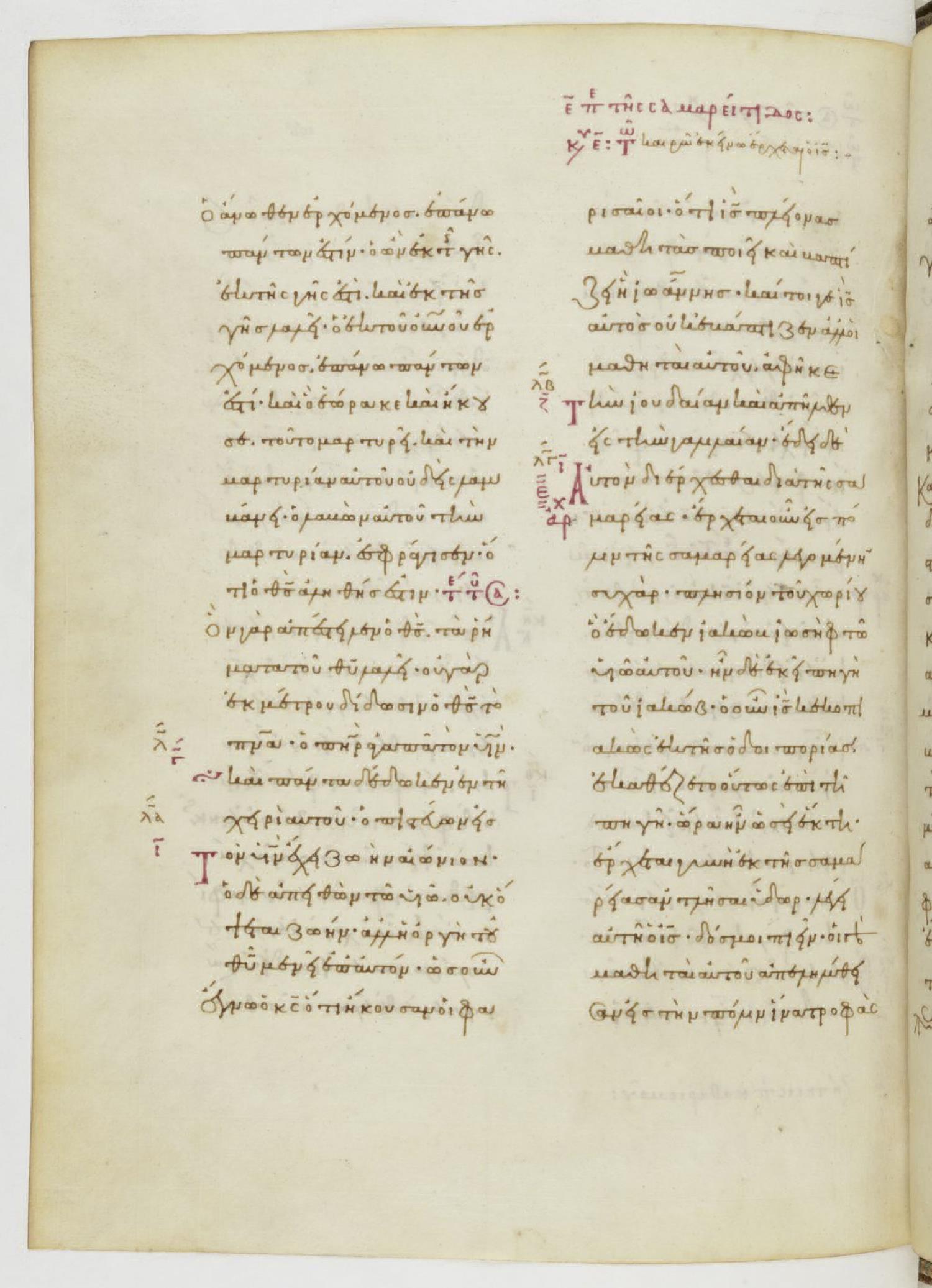 Eleventh century minuscule of the Gospels on parchment; 199 leaves, 2 columns, 22 lines per column. For recent images, please visit the Bibliothèque Nationale.