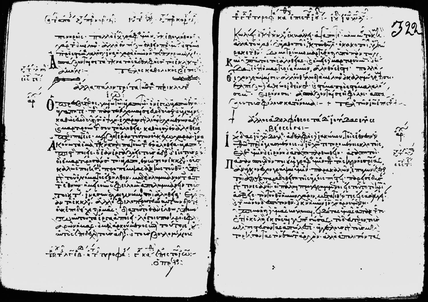 Eleventh century minuscule of the Gospels, Apostolos, and Paul on parchment; 347 leaves, single column, 25 lines per column. Digital images are from microfilm.