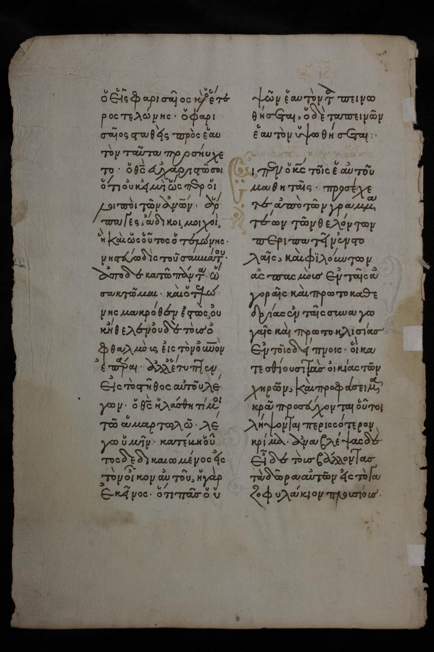 Sixteenth century lectionary of the Gospels on paper; 1 leaf, 2 columns, 23 lines per column. This lectionary was formerly known as GA Lect 2282, but has been determined to belong to GA Lect 2434 along with leaves held in at least 17 different locations.