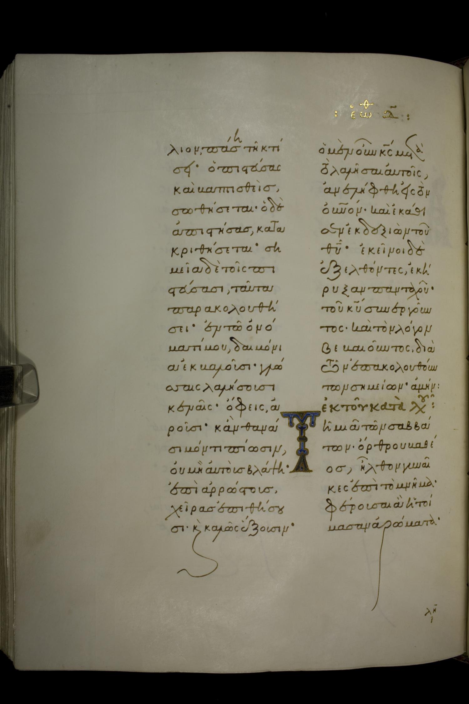 Fourteenth-century Gospels lectionaryon parchment; 368 leaves, 2 columns, 20 lines per column. By agreement with the owners of the manuscript, the images posted online are 100dpi. For recent digital images, visit BML Online.