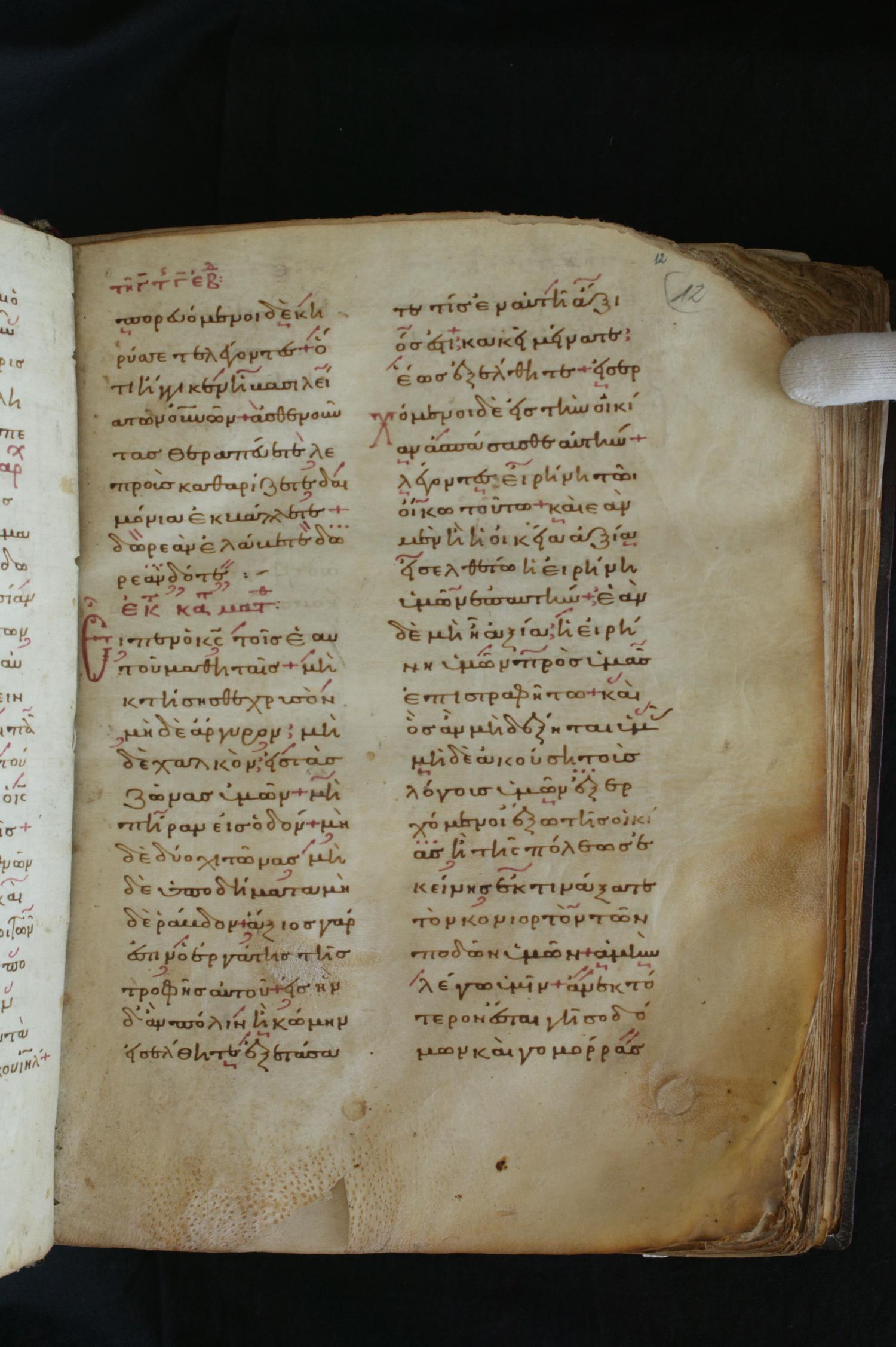 Gospels lectionary manuscript on parchment; 151 leaves, 2 columns, 22–25 lines per column. By agreement with the Albanian National Archives, only a portion of the manuscript is posted.
