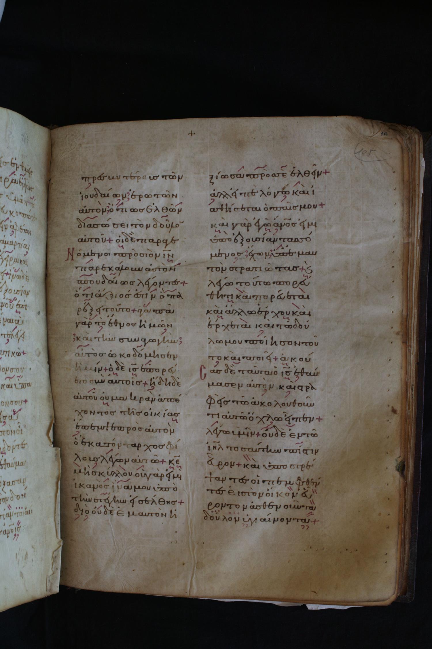 Gospels lectionary manuscript on parchment; 151 leaves, 2 columns, 22–25 lines per column. By agreement with the Albanian National Archives, only a portion of the manuscript is posted.