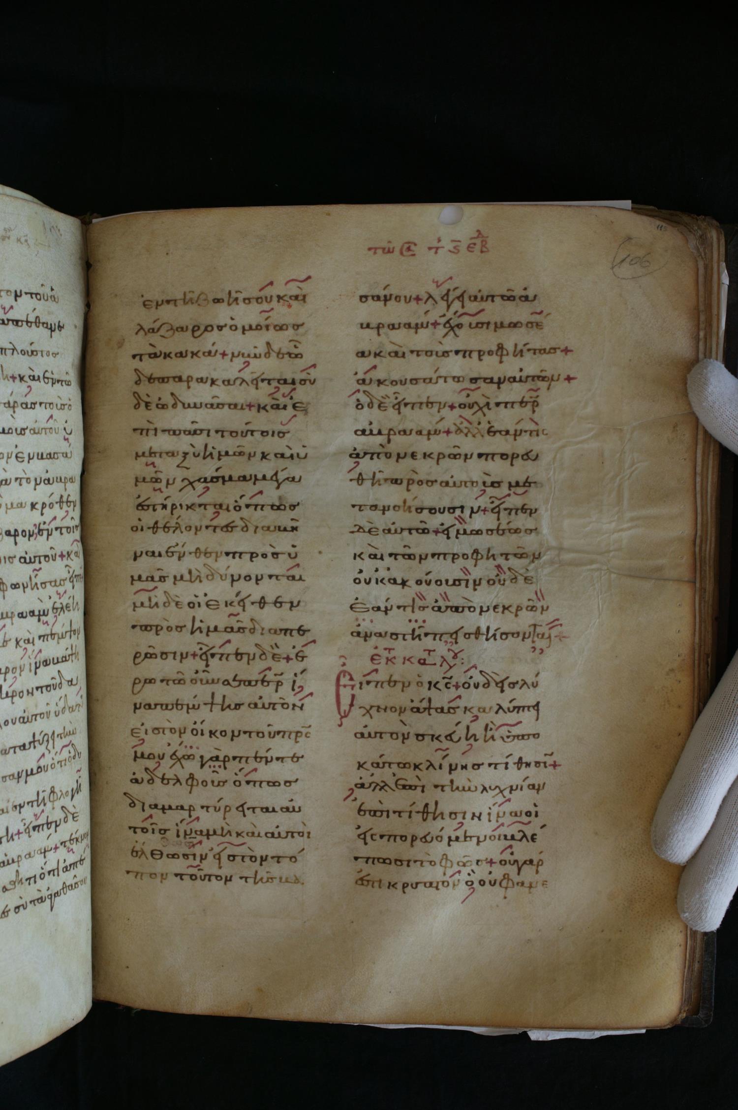 Gospels lectionary manuscript on parchment; 151 leaves, 2 columns, 22–25 lines per column. By agreement with the Albanian National Archives, only a portion of the manuscript is posted.