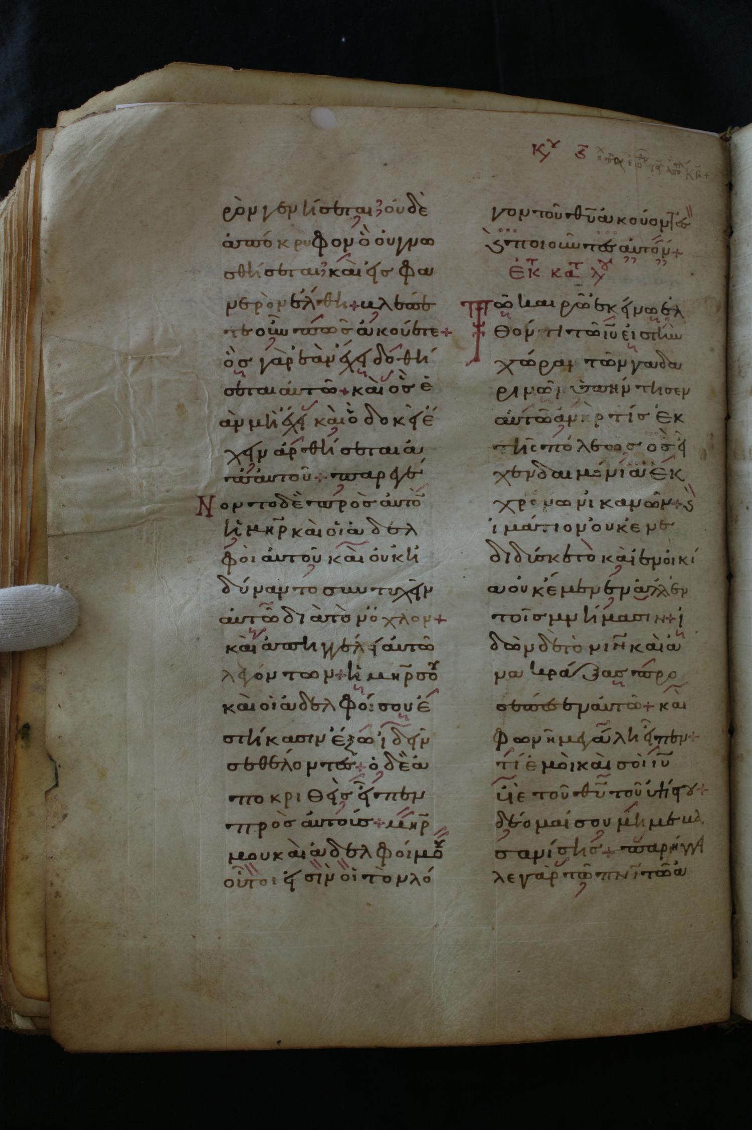 Gospels lectionary manuscript on parchment; 151 leaves, 2 columns, 22–25 lines per column. By agreement with the Albanian National Archives, only a portion of the manuscript is posted.