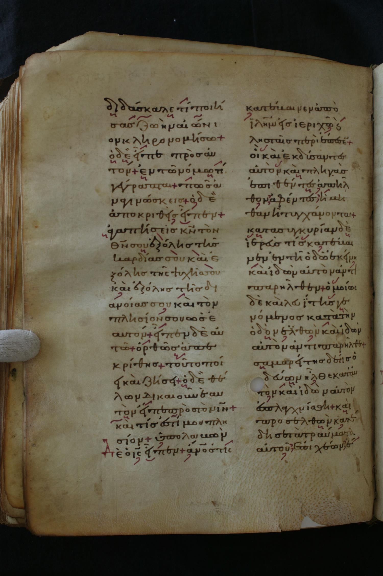 Gospels lectionary manuscript on parchment; 151 leaves, 2 columns, 22–25 lines per column. By agreement with the Albanian National Archives, only a portion of the manuscript is posted.