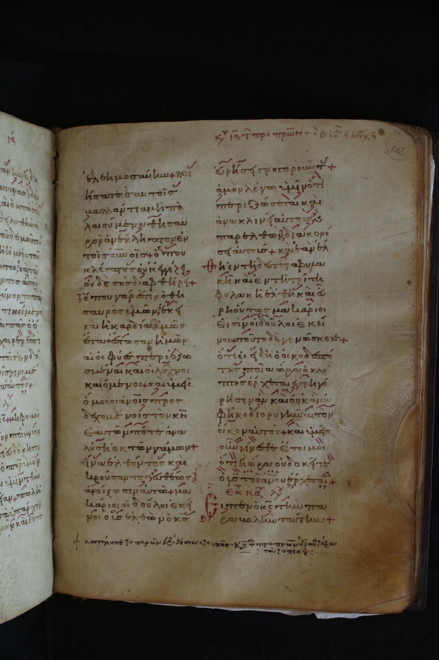Gospels lectionary manuscript on parchment; 151 leaves, 2 columns, 22–25 lines per column. By agreement with the Albanian National Archives, only a portion of the manuscript is posted.