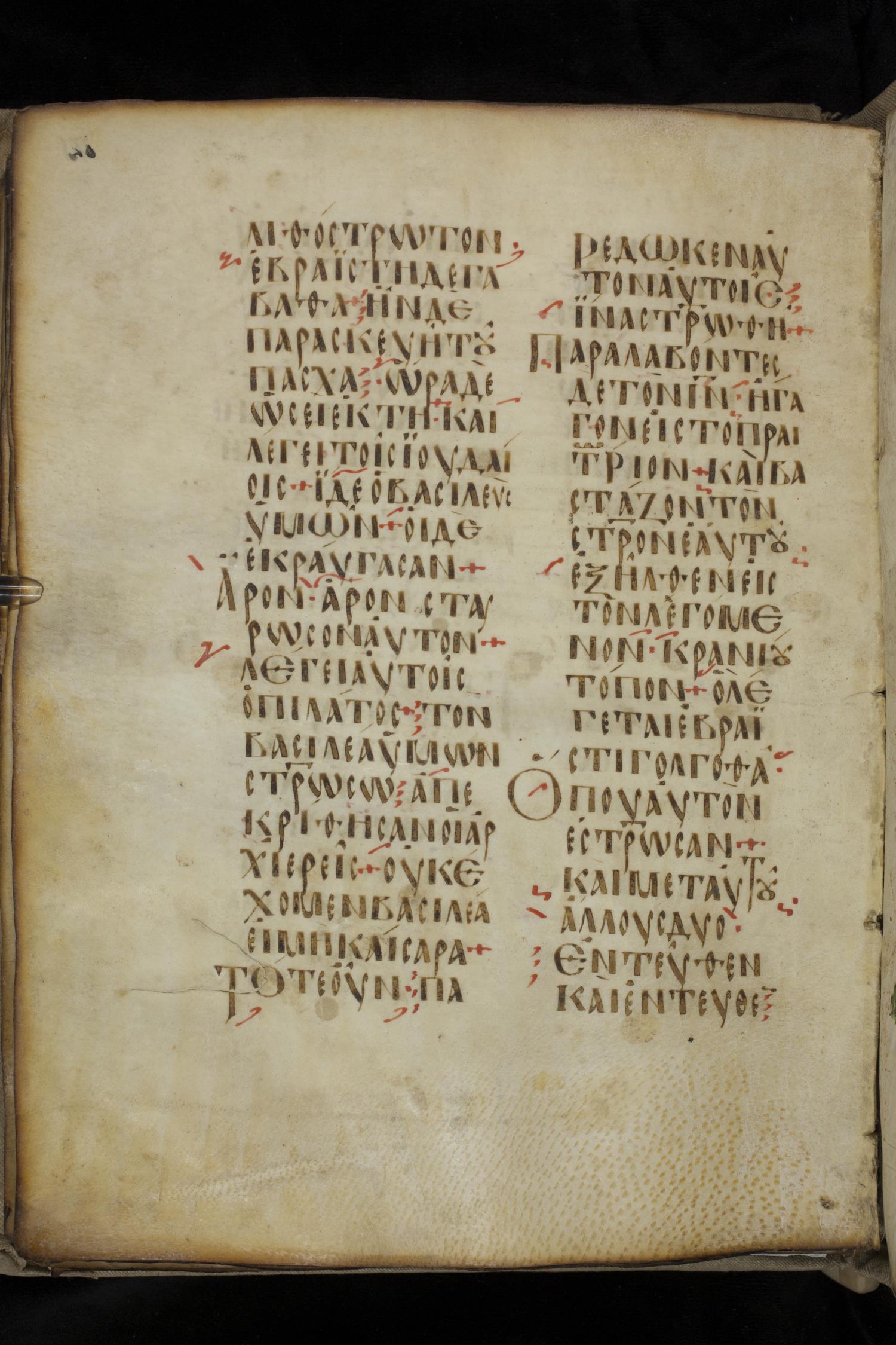 Ninth century majuscule lectionary on parchment; 88 leaves, 2 columns, 20 lines per column. Images were taken at the National Library of Greece in Athens.