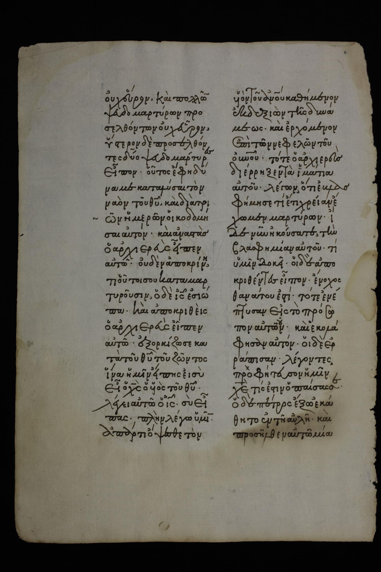 Sixteenth century Gospels lectionary on paper; 4 leaves, 2 columns, 23 lines per column. CSNTM digitized this manuscript in partnership with Houston Baptist University in 2019.