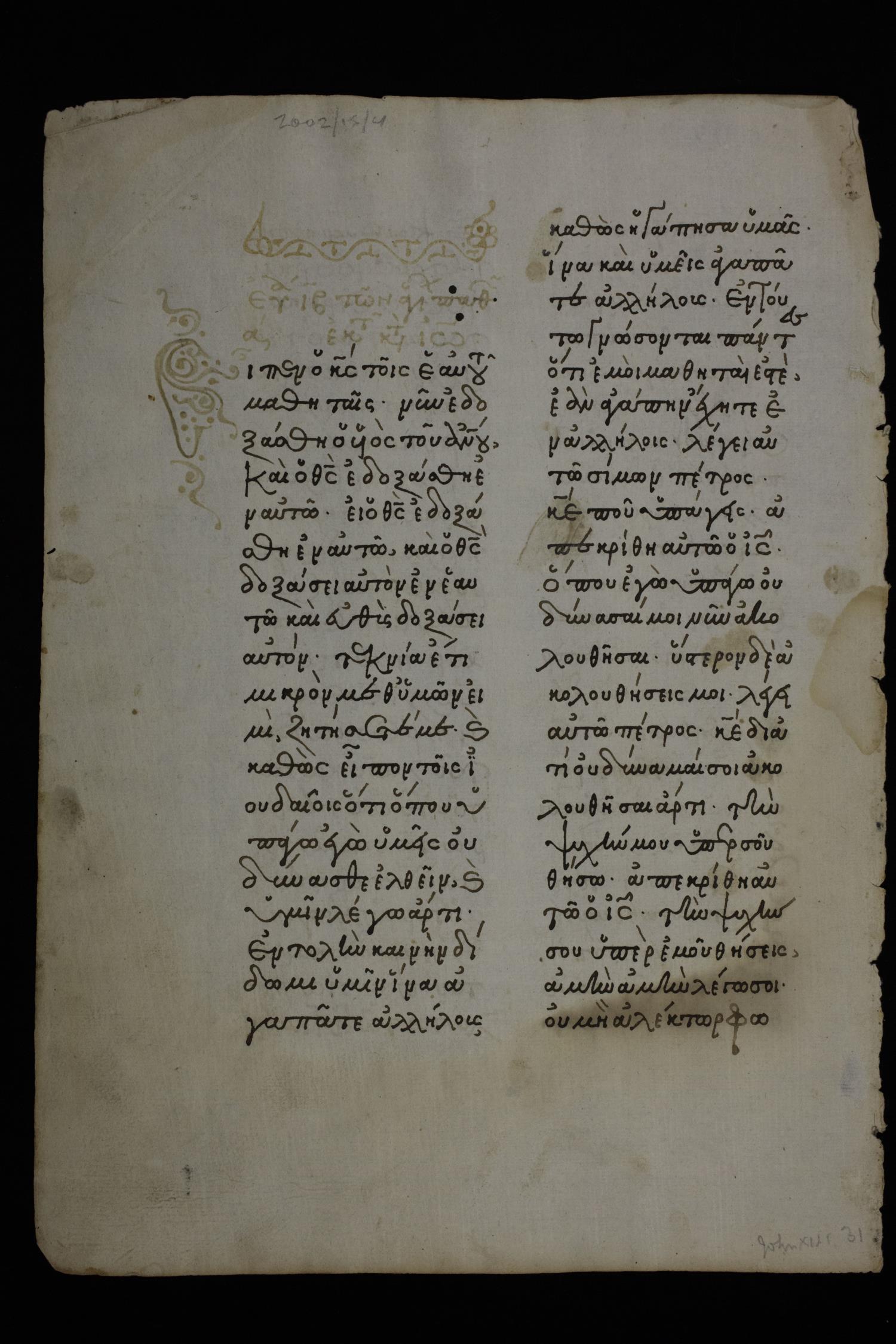 Sixteenth century Gospels lectionary on paper; 4 leaves, 2 columns, 23 lines per column. CSNTM digitized this manuscript in partnership with Houston Baptist University in 2019.
