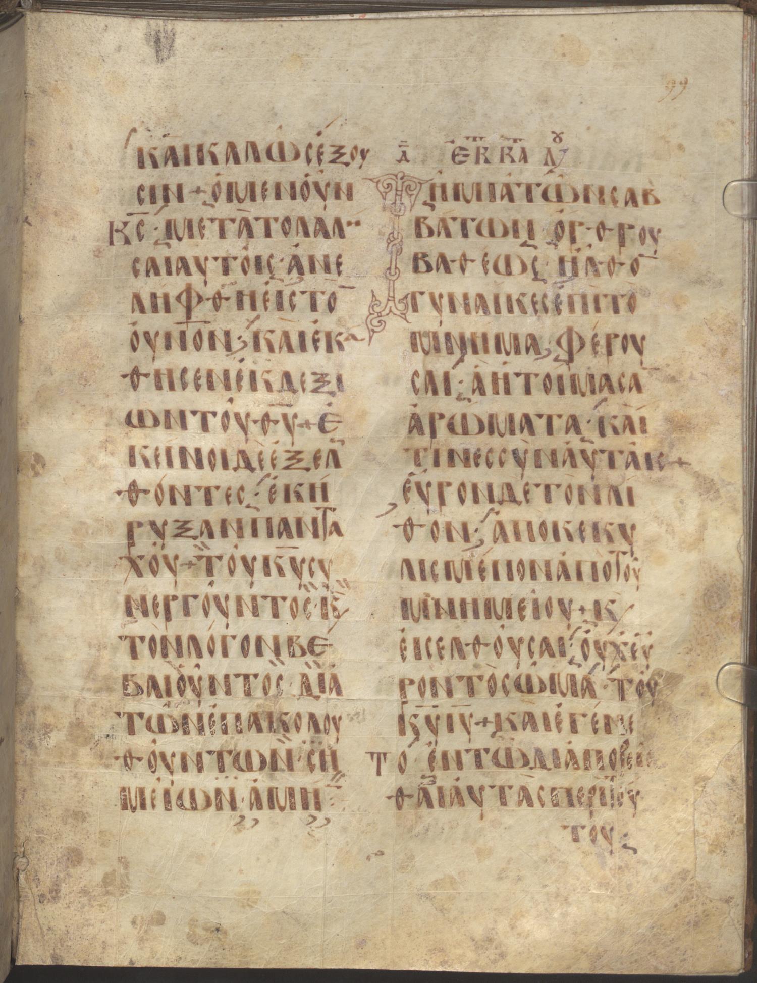 Ninth century lectionary on parchment in three volumes; 430 leaves; 2 columns per page; 18 lines per column. These images are made available according to Creative Commons. For recent images: BSB 1, BSB 2, and BSB 3.