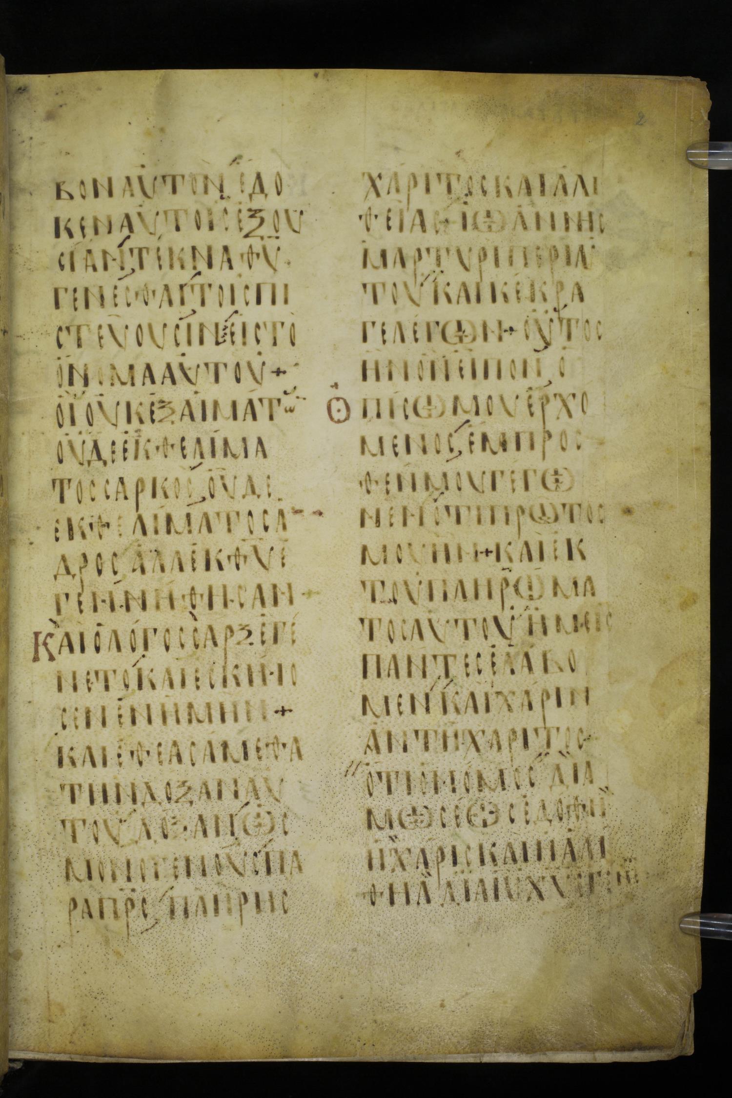 Ninth or tenth century majuscule lectionary on parchment; 273 leaves, 2 columns, 20-21 lines per column. Images were taken at the National Library of Greece in Athens.