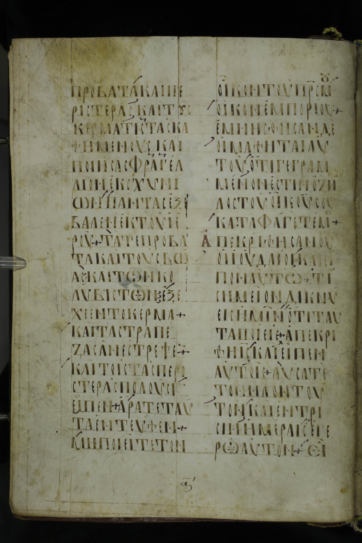 Ninth or tenth century majuscule lectionary on parchment; 273 leaves, 2 columns, 20-21 lines per column. Images were taken at the National Library of Greece in Athens.
