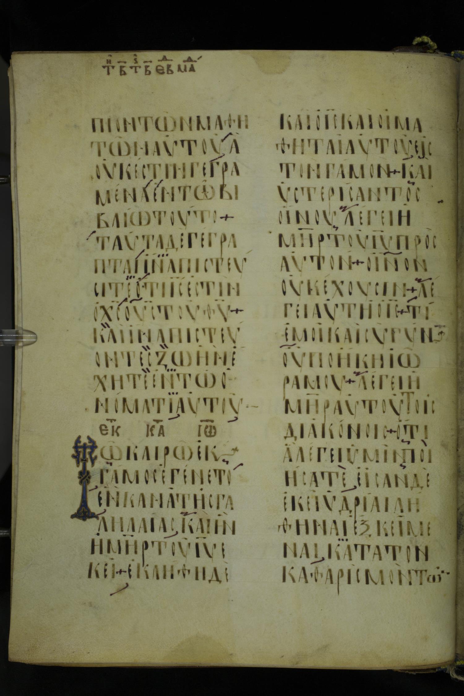Ninth or tenth century majuscule lectionary on parchment; 273 leaves, 2 columns, 20-21 lines per column. Images were taken at the National Library of Greece in Athens.