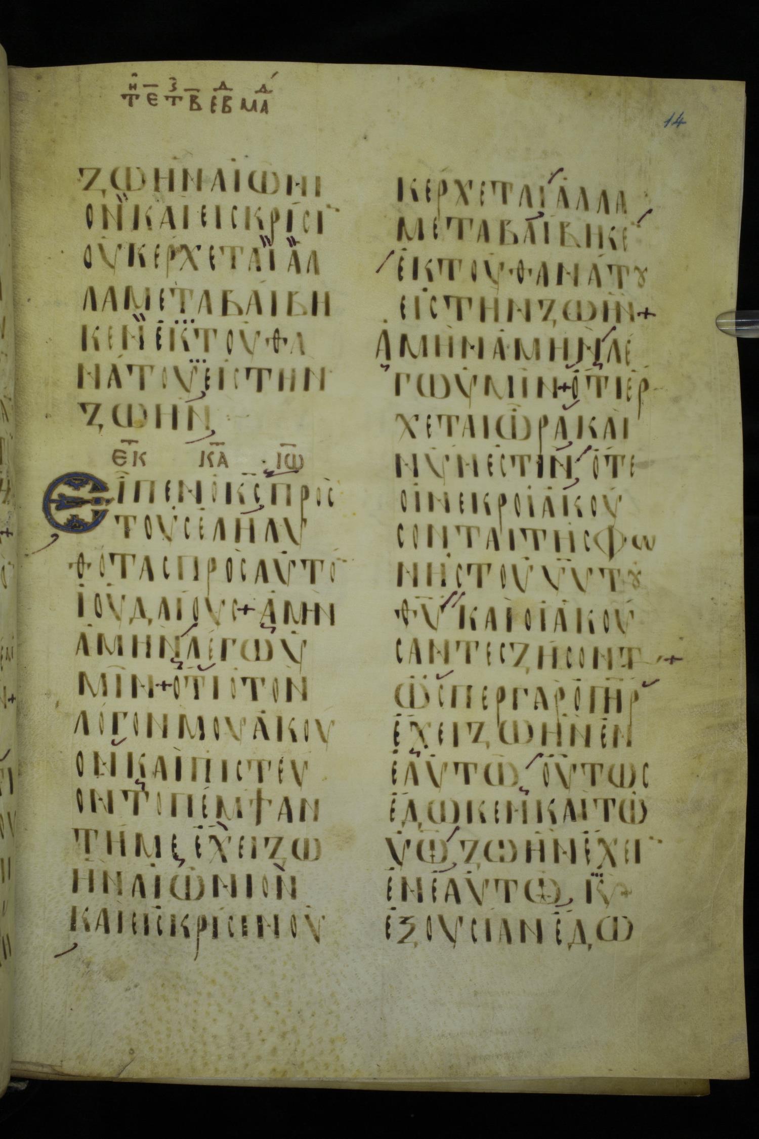 Ninth or tenth century majuscule lectionary on parchment; 273 leaves, 2 columns, 20-21 lines per column. Images were taken at the National Library of Greece in Athens.