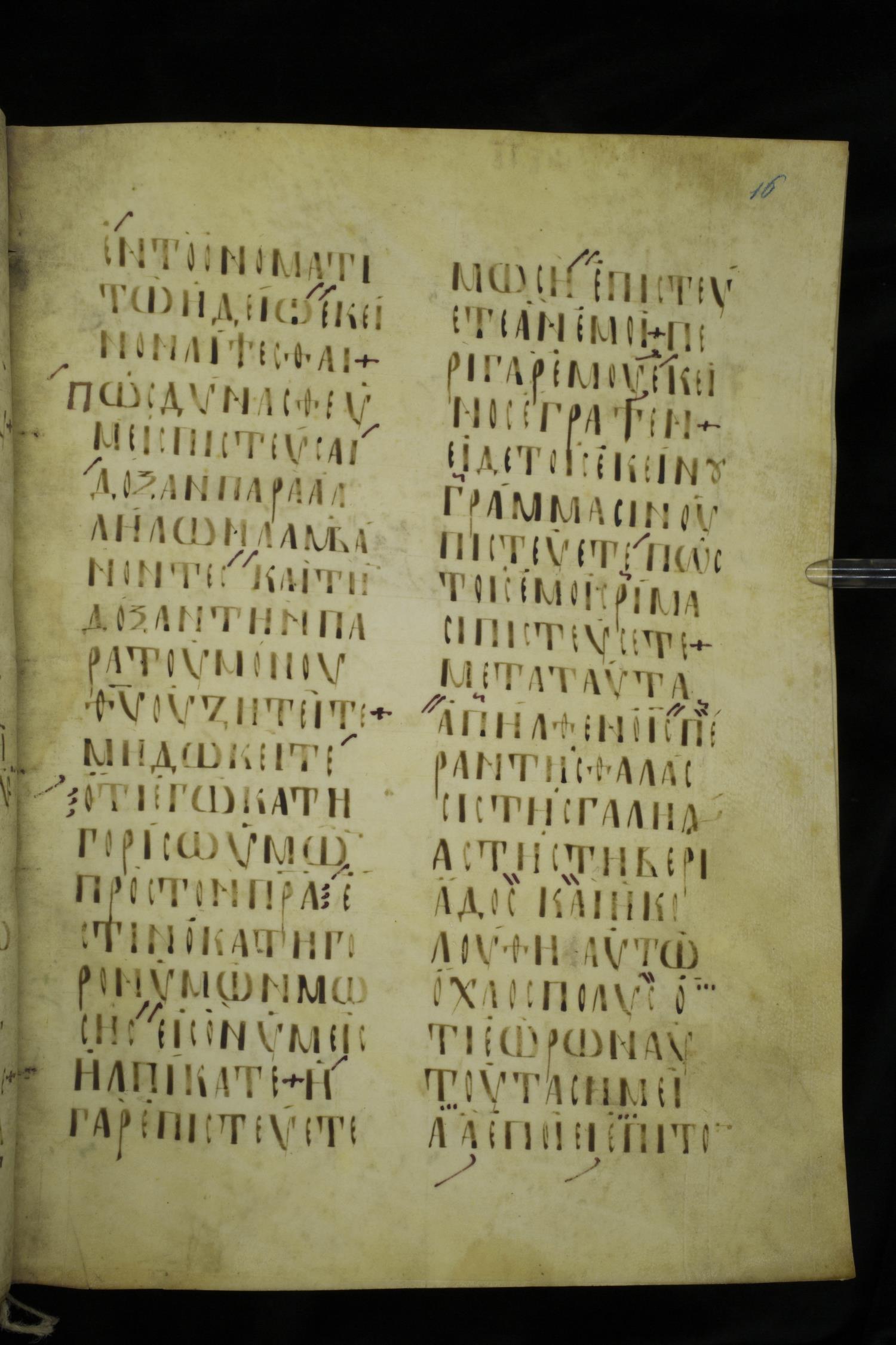 Ninth or tenth century majuscule lectionary on parchment; 273 leaves, 2 columns, 20-21 lines per column. Images were taken at the National Library of Greece in Athens.