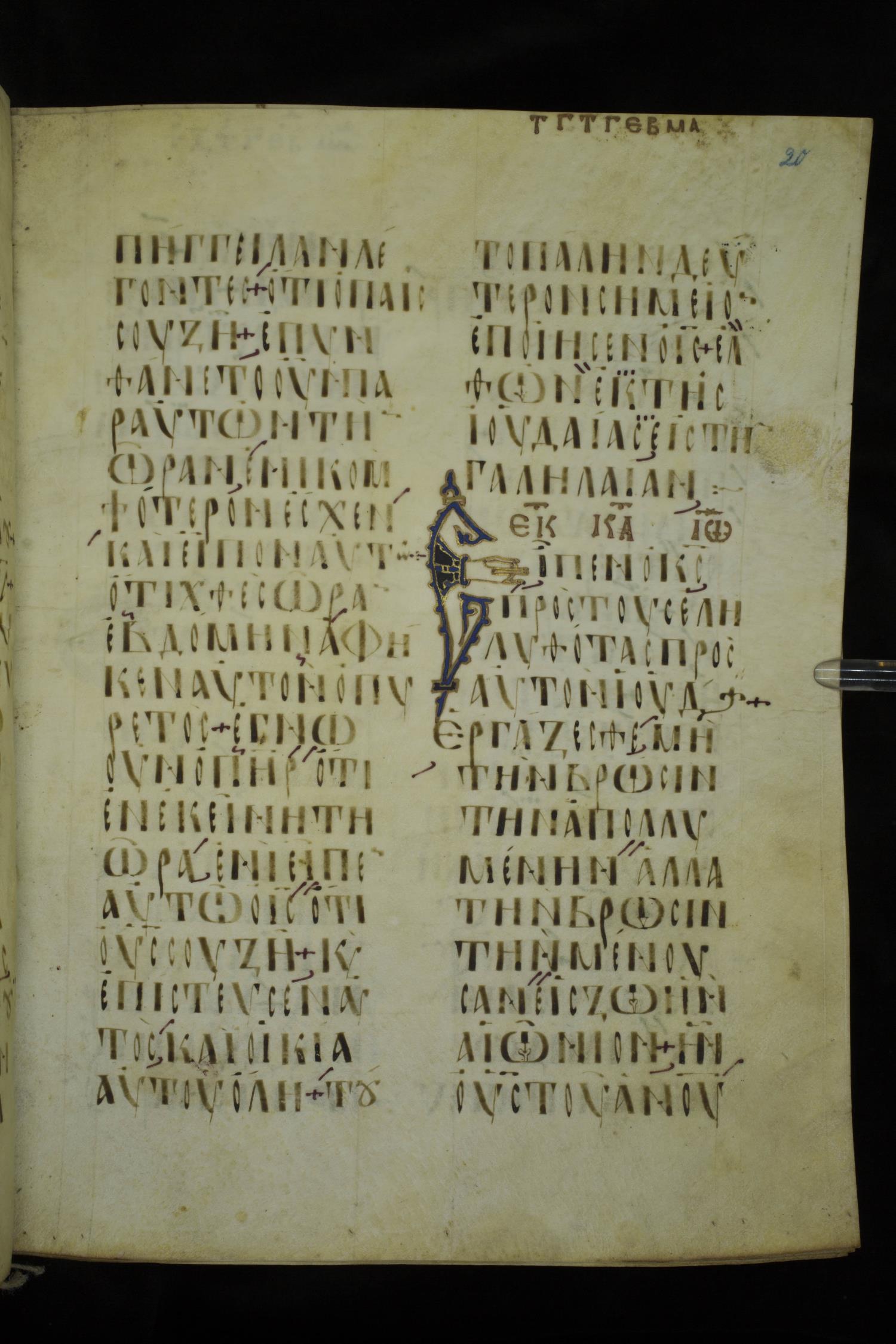 Ninth or tenth century majuscule lectionary on parchment; 273 leaves, 2 columns, 20-21 lines per column. Images were taken at the National Library of Greece in Athens.