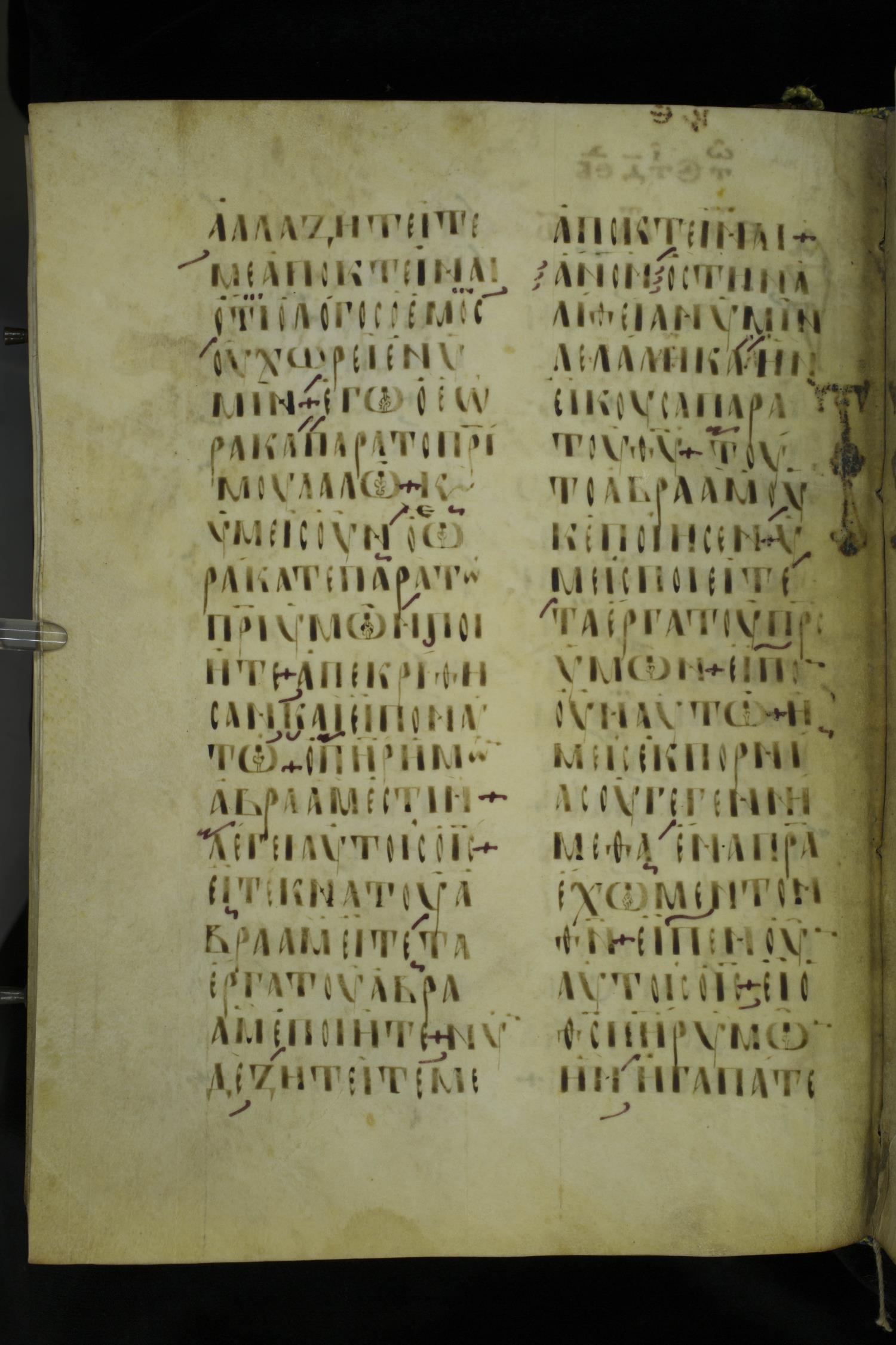 Ninth or tenth century majuscule lectionary on parchment; 273 leaves, 2 columns, 20-21 lines per column. Images were taken at the National Library of Greece in Athens.