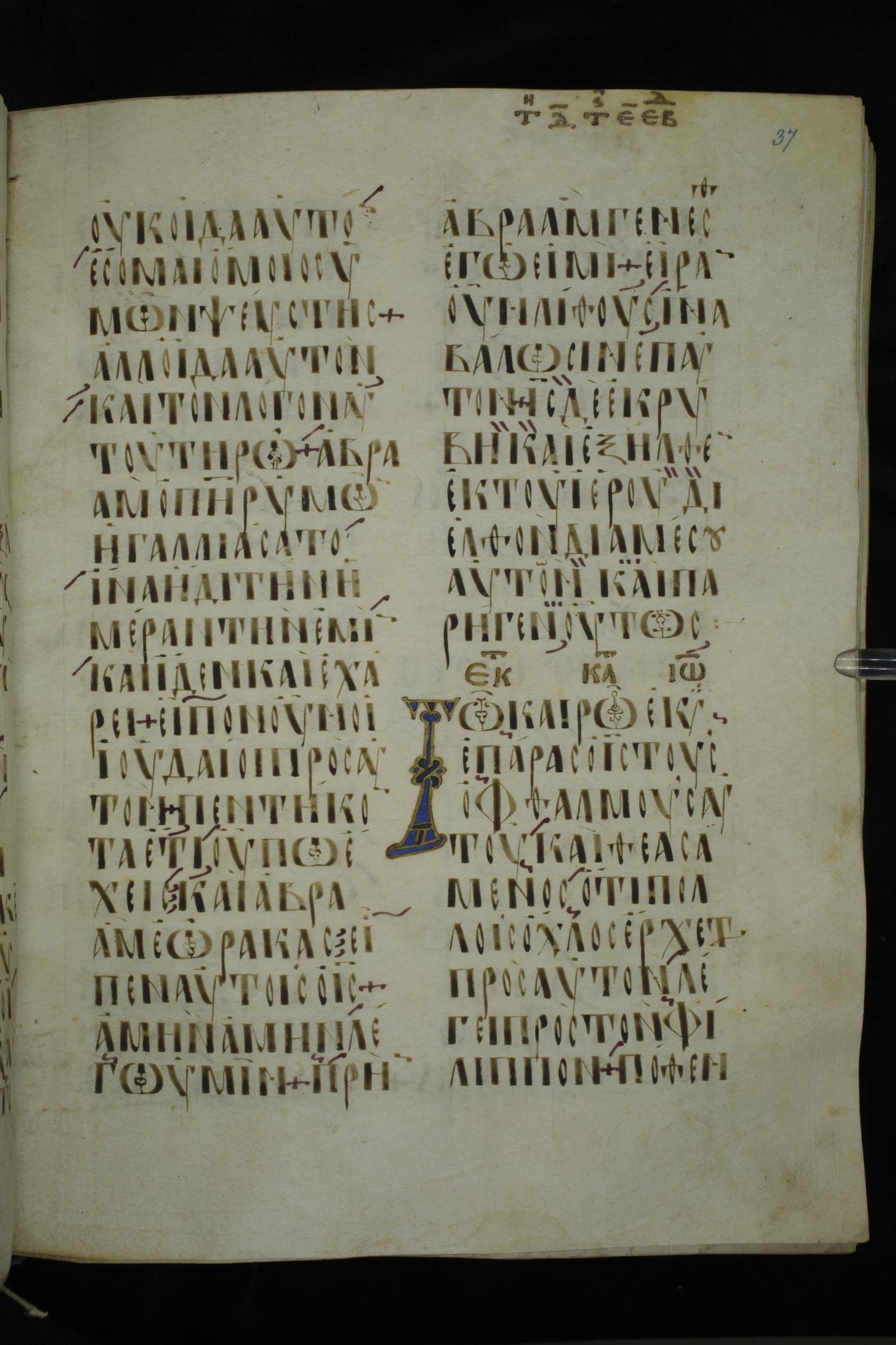 Ninth or tenth century majuscule lectionary on parchment; 273 leaves, 2 columns, 20-21 lines per column. Images were taken at the National Library of Greece in Athens.